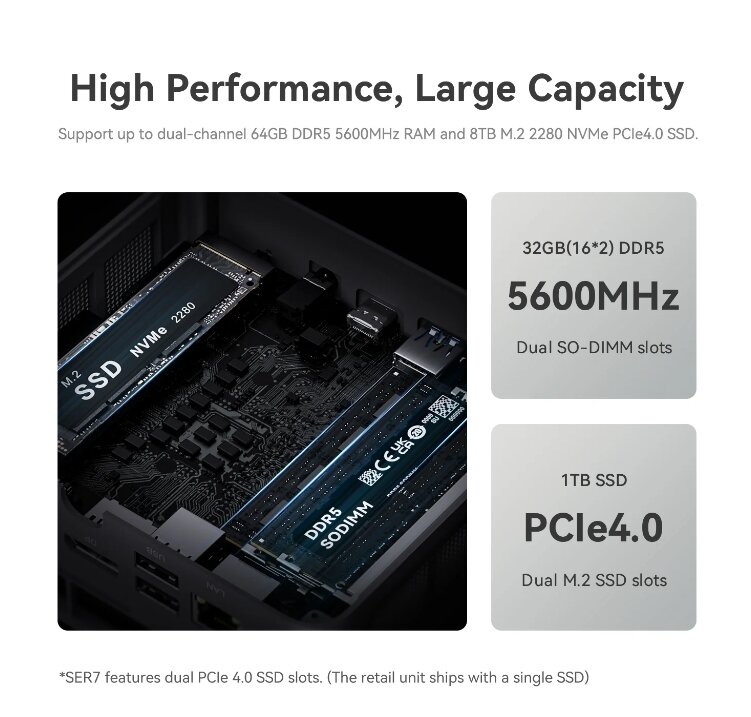 Купить Мини ПК Beelink SER7 AMD Ryzen 7 7840HS 64Gb DDR5 5600 4Tb SSD ACER