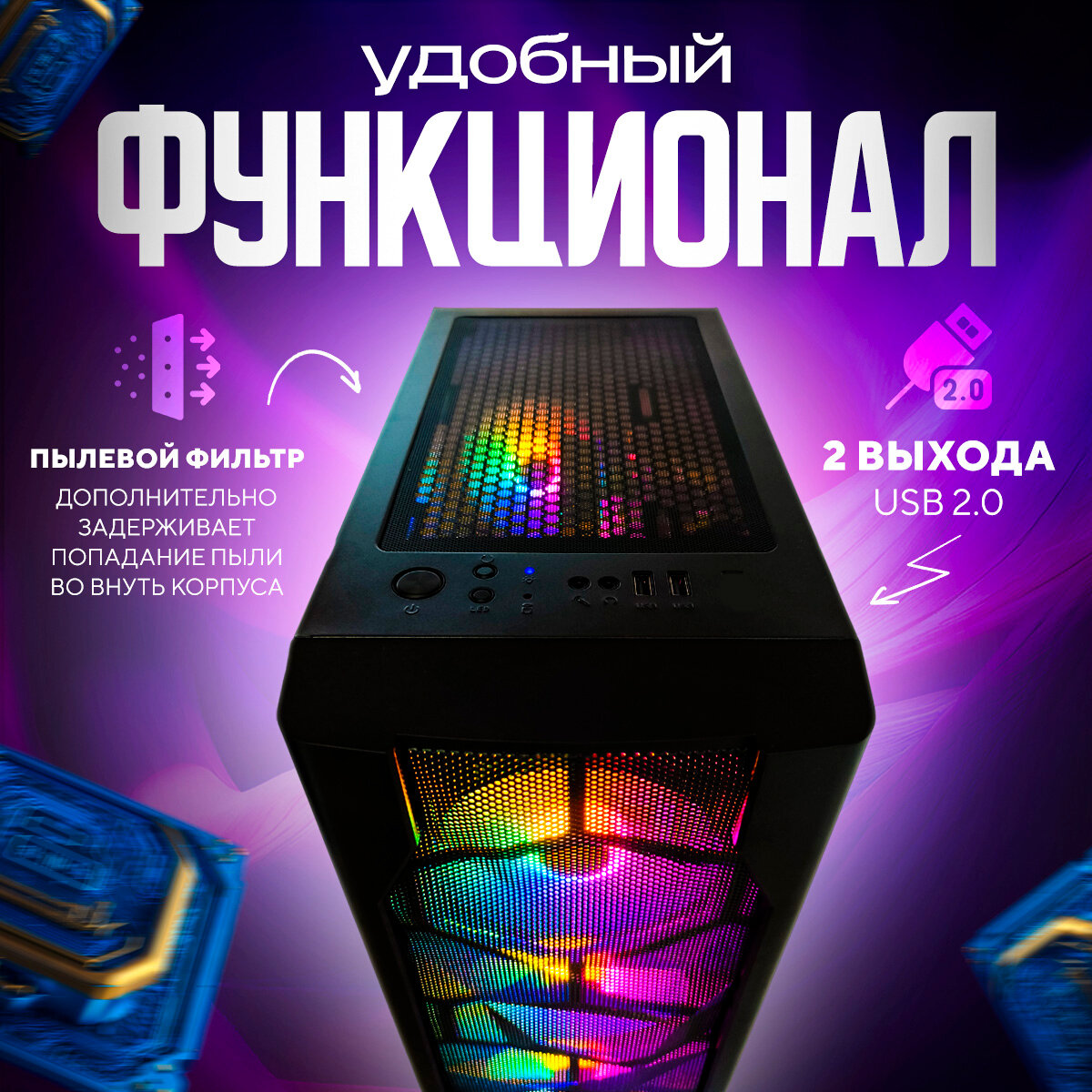 Игровой компьютер юкомс Ryzen 3 1200, GTX 1630 4GB, SSD 512GB, 32GB DDR4, БП TT450 450W, win 10 pro, Игровой юкомс чёрный