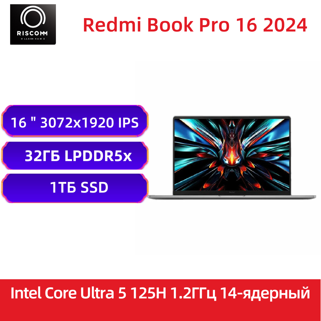 16" Ноутбук Xiaomi Redmi Book Pro 16 (2024), 3072x1920 165Hz, Intel Core Ultra 5 125H, Intel ARC Graphics, 32 ГБ/1 ТБ, Windows 11, русская клавиатура