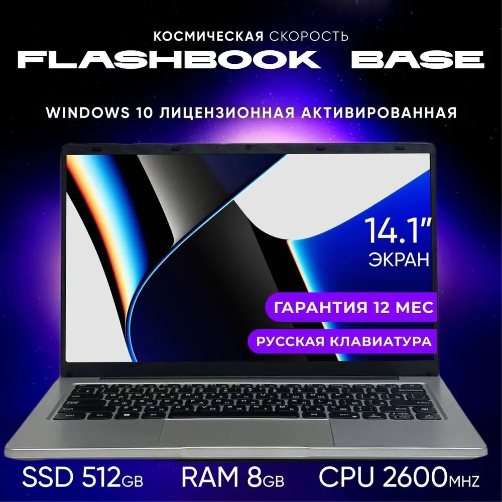 Купить FlashBook Ноутбук 14.1", Intel Celeron N4000, RAM 8 ГБ, SSD 512 ГБ, Intel UHD Graphics 600, Windows Pro, серебристый, Русская раскладка
