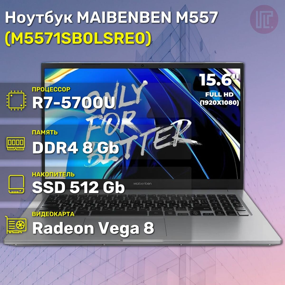 Купить Ноутбук Maibenben M557 AMD R7-5700U 15.6" 1920x1080 8ГБ+SSD 512ГБ AMD Radeon Graphics Linux серебро,для работы и учебы,15.6 дюймов,распродажа
