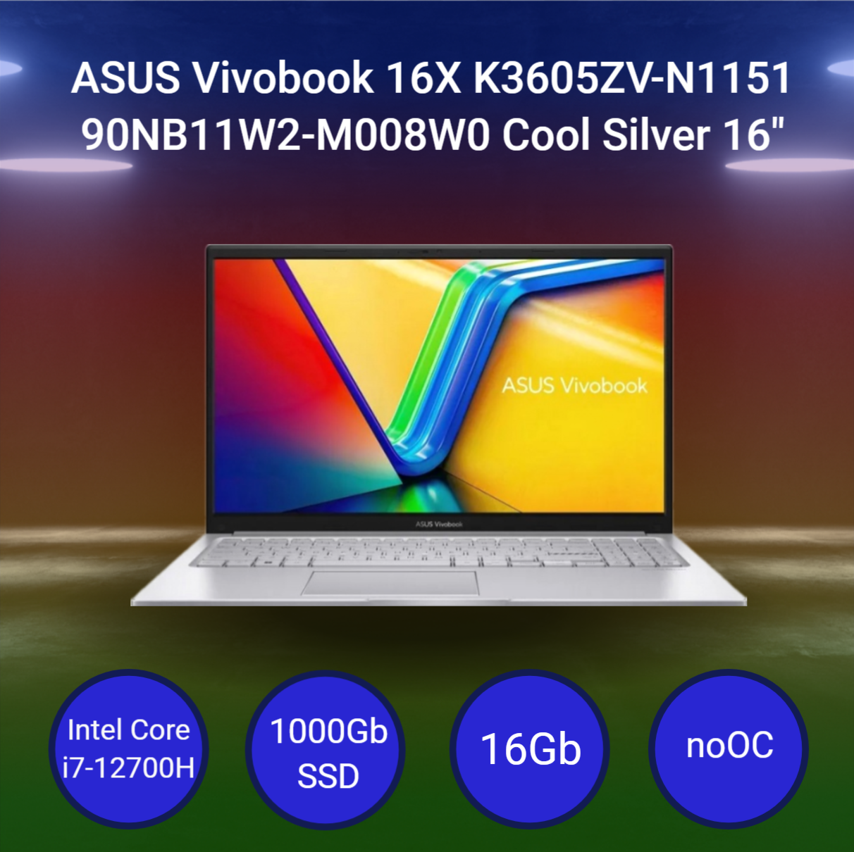 Купить Ноутбук ASUS VivoBook 16X K3605ZV-N1151 90NB11W2-M008W0 (16", Core i7 12700H, 16 ГБ/ SSD 1024 ГБ, GeForce® RTX 4060 для ноутбуков) Серебристый