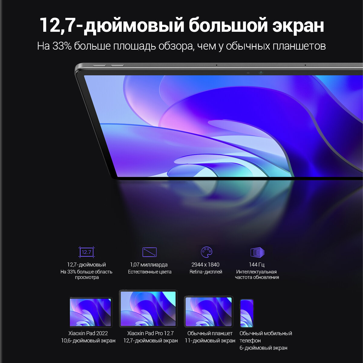 12.7" Планшет Lenovo Xiaoxin Pad Pro CN, 8/128ГБ, 2944x 1840,144 Гц, Wi-Fi, Android 13, серый интересное: