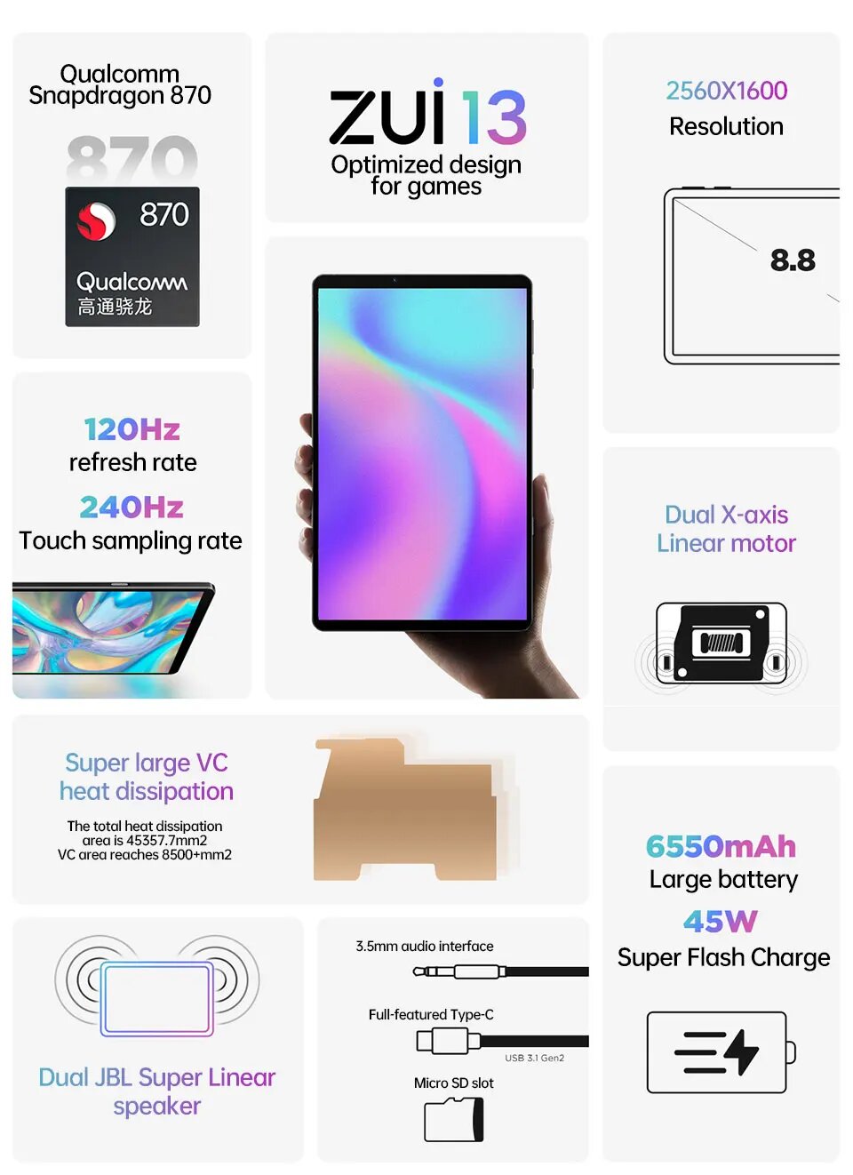 Lenovo LEGION Y700 планшет на Android 11, восемь ядер, экран 2022 дюйма, 12 Гб + 870 ГБ