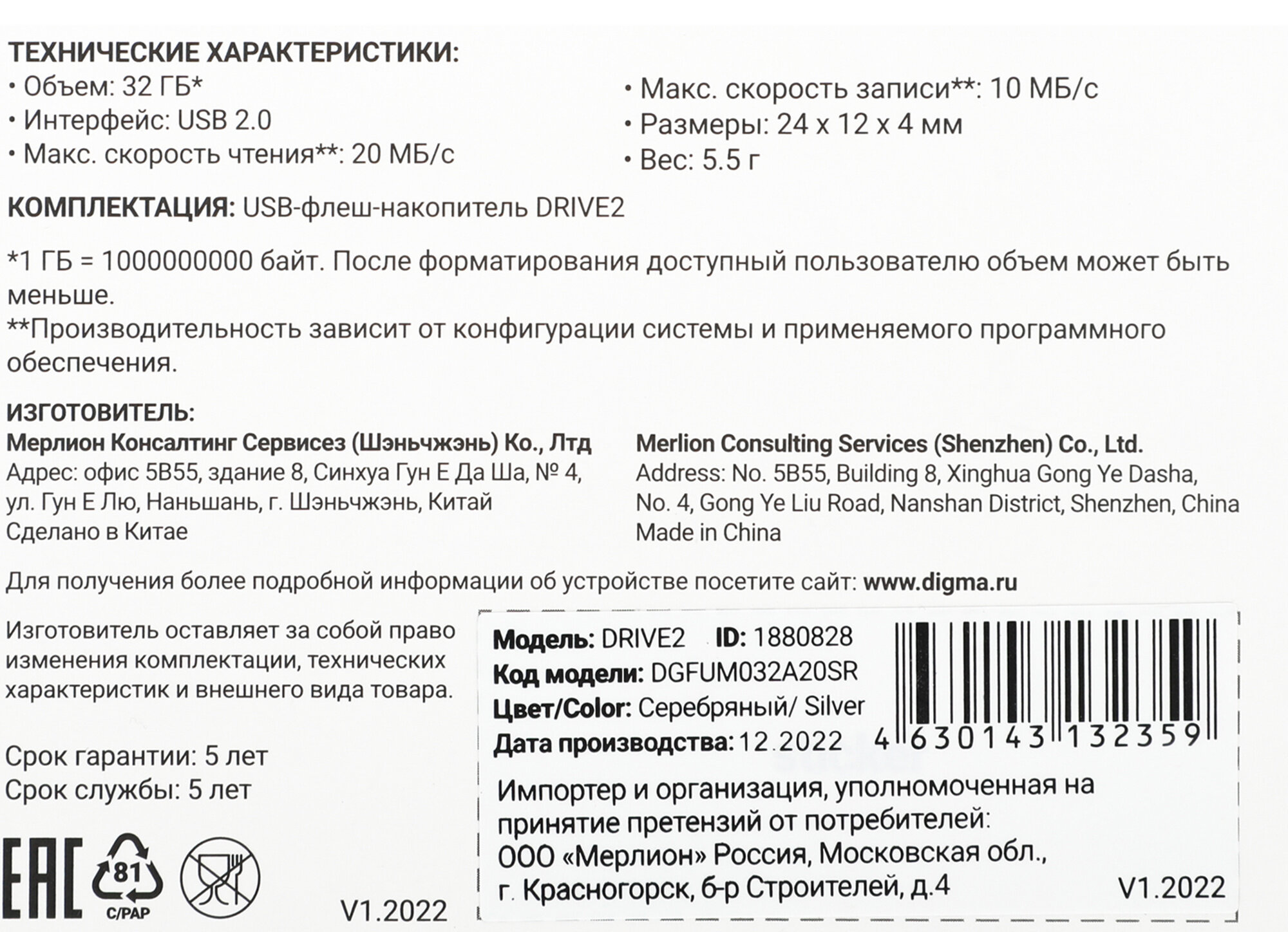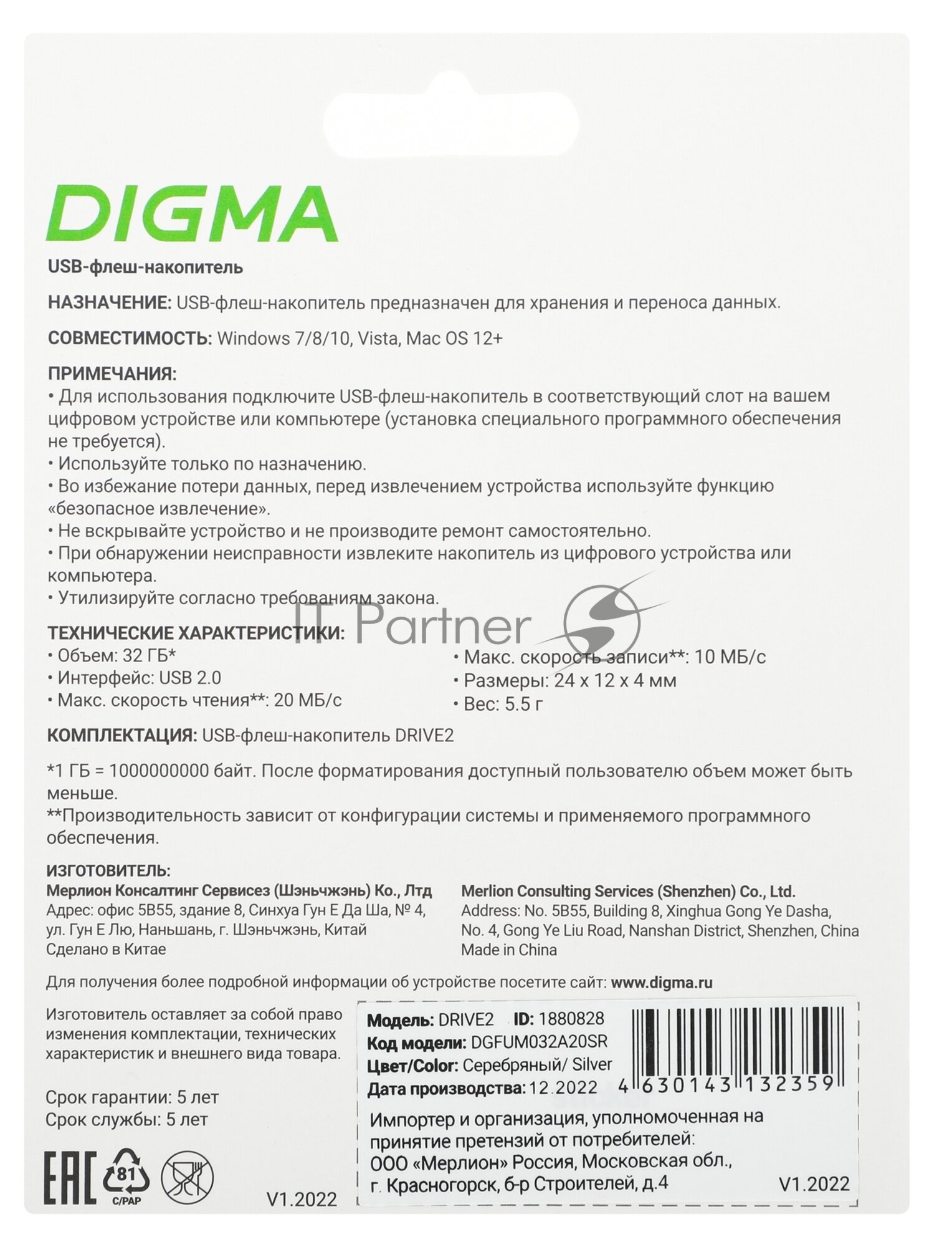 Флэш-память USB_ 32 GB Digma DRIVE2 DGFUM032A20SR USB2.0 серебристый интересное: