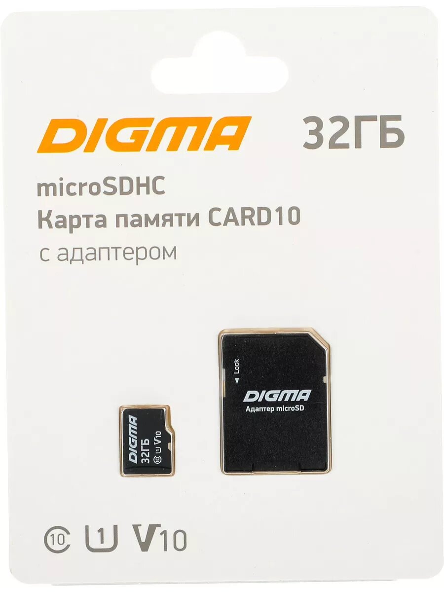 Карта памяти microSDHC UHS-I U1 Digma 32 ГБ, 70 МБ/с, Class 10, CARD10, 1 шт., переходник SD [dgfca032a01]