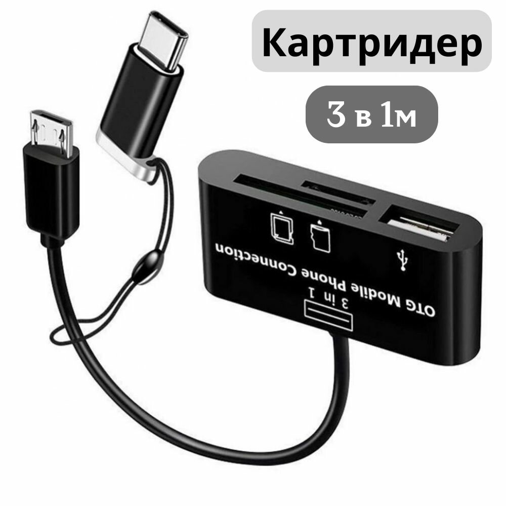 Купить Картридер для карт памяти USB, microsd, SD. Адаптер / переходник USB Type-C для ноутбука, телефона