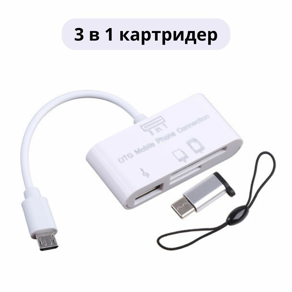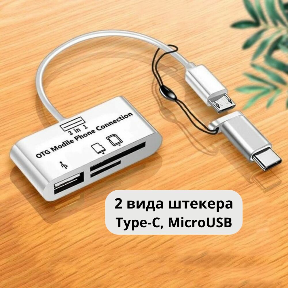 Картридер для карт памяти USB, microsd, SD. Адаптер / переходник USB Type-C для ноутбука, телефона
