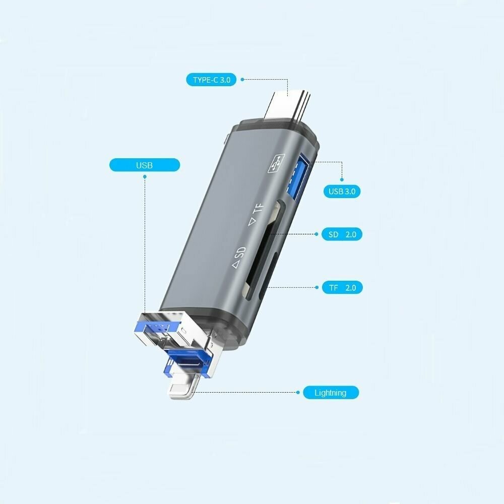 Купить Картридер Type-C, Lightning, USB, SD, microSD, универсальный картридер для IPhone(айфон) Android / Sellerweb