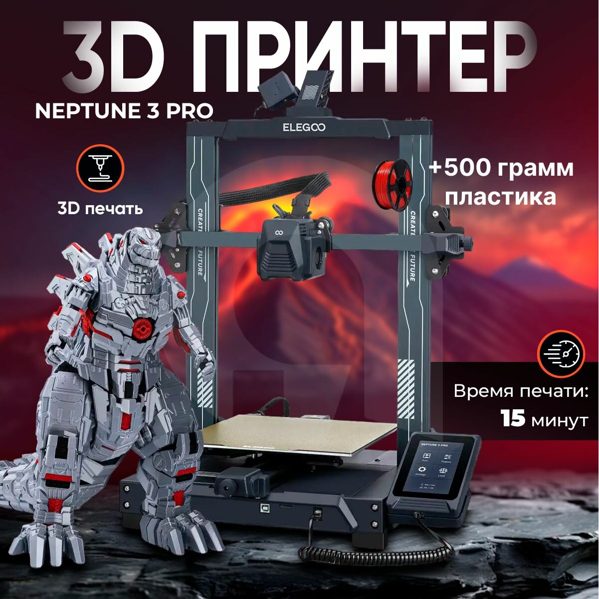 3д принтер ELEGOO Neptune 3 Pro, 225х225х280, FDM, 1 экструдер, 200 мм/сек скорость печати интересное: