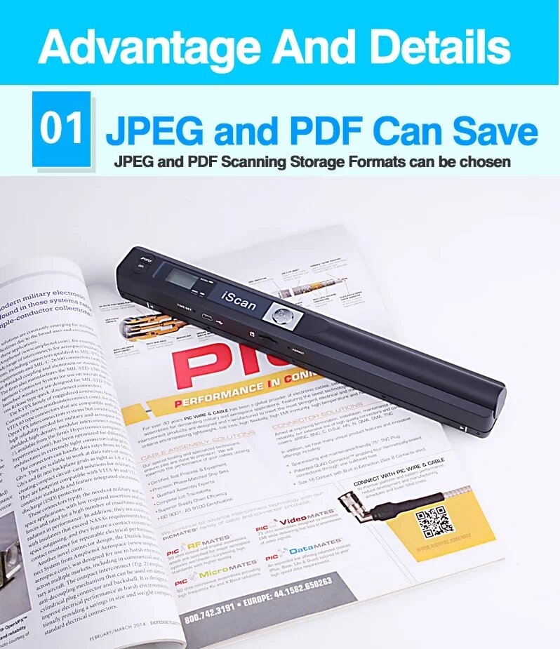 Портативный портативный сканер A4 для документов 900 DPI USB ЖК-дисплей интересное: