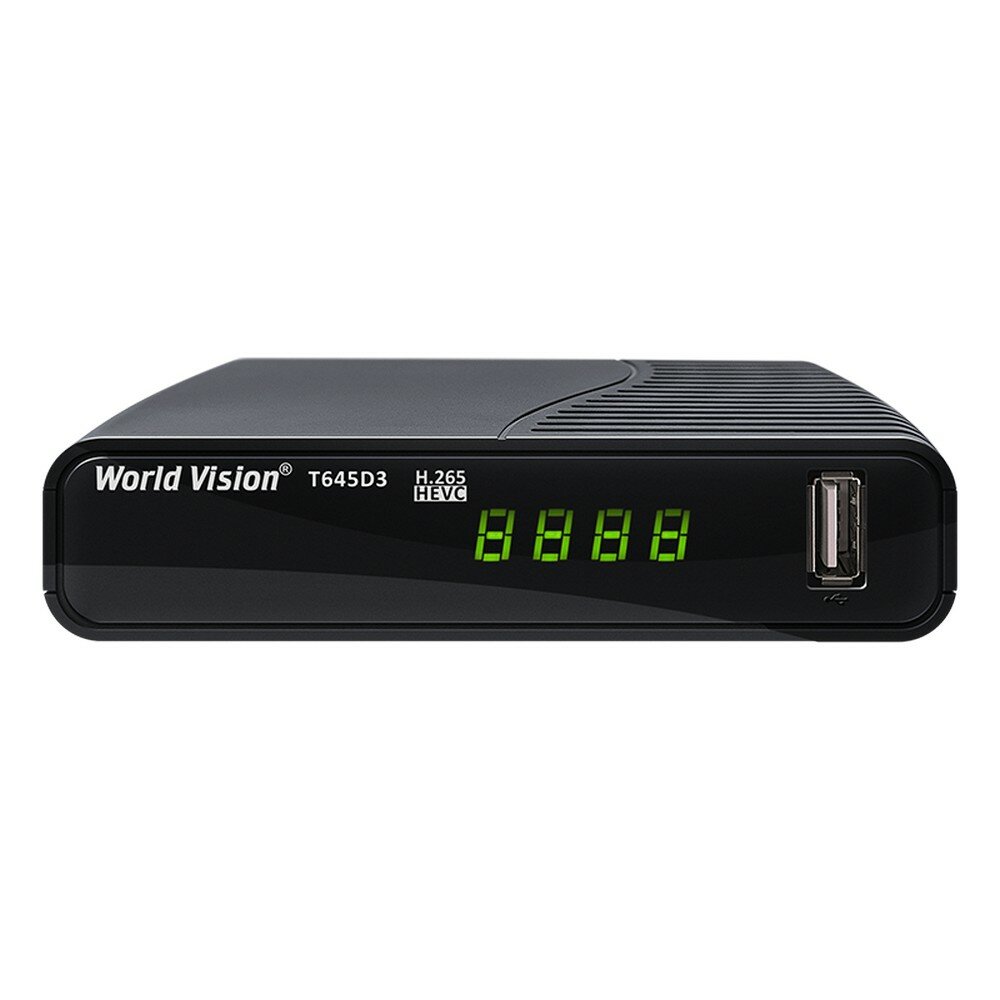 Купить TV-тюнер WORLD VISION T645 D3 FM (T2+C,пластик,с дисплеем,без кнопок,выносной БП,IPTV,DD)