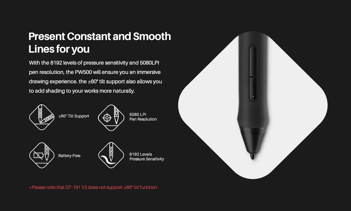Купить Цифровой планшет HUION PW500 без аккумулятора с 8 наконечниками для графического планшета Q620M HS611 Q11K V2 WH1409 V2 монитор Kamvas Pro 22 (2019)