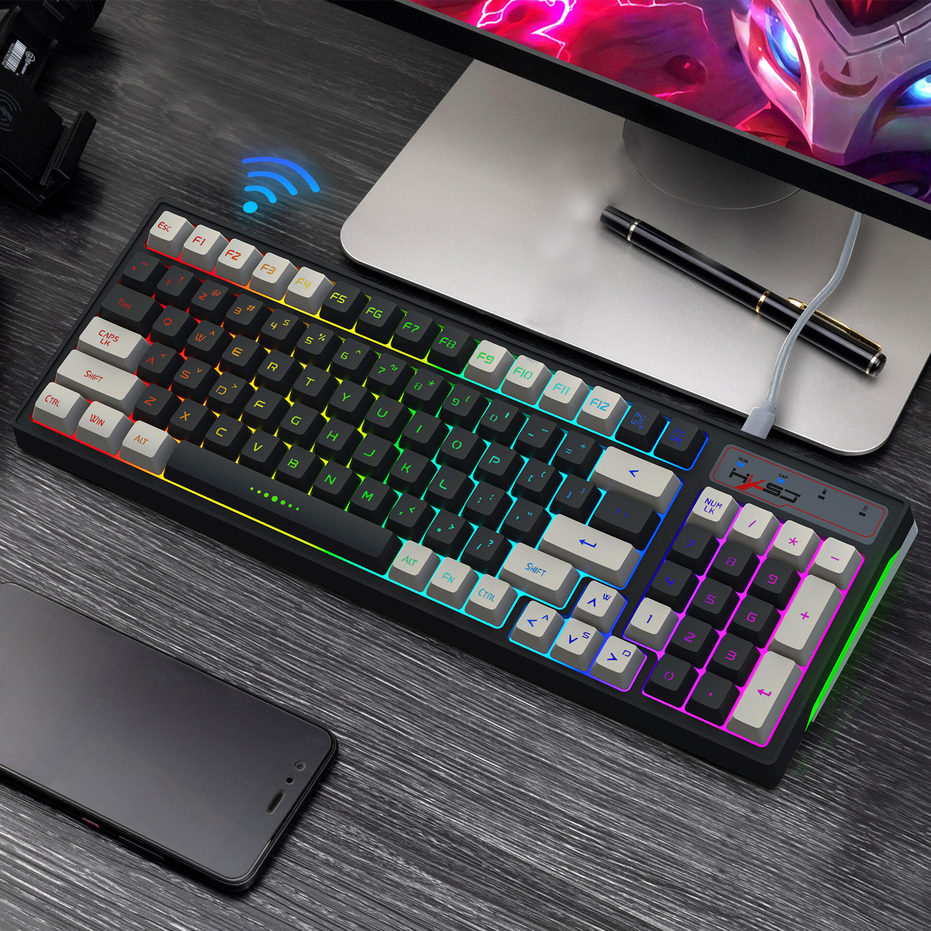 Игровой набор L99, беспроводная клавиатура и мышь, RGB подсветка, белый интересное: