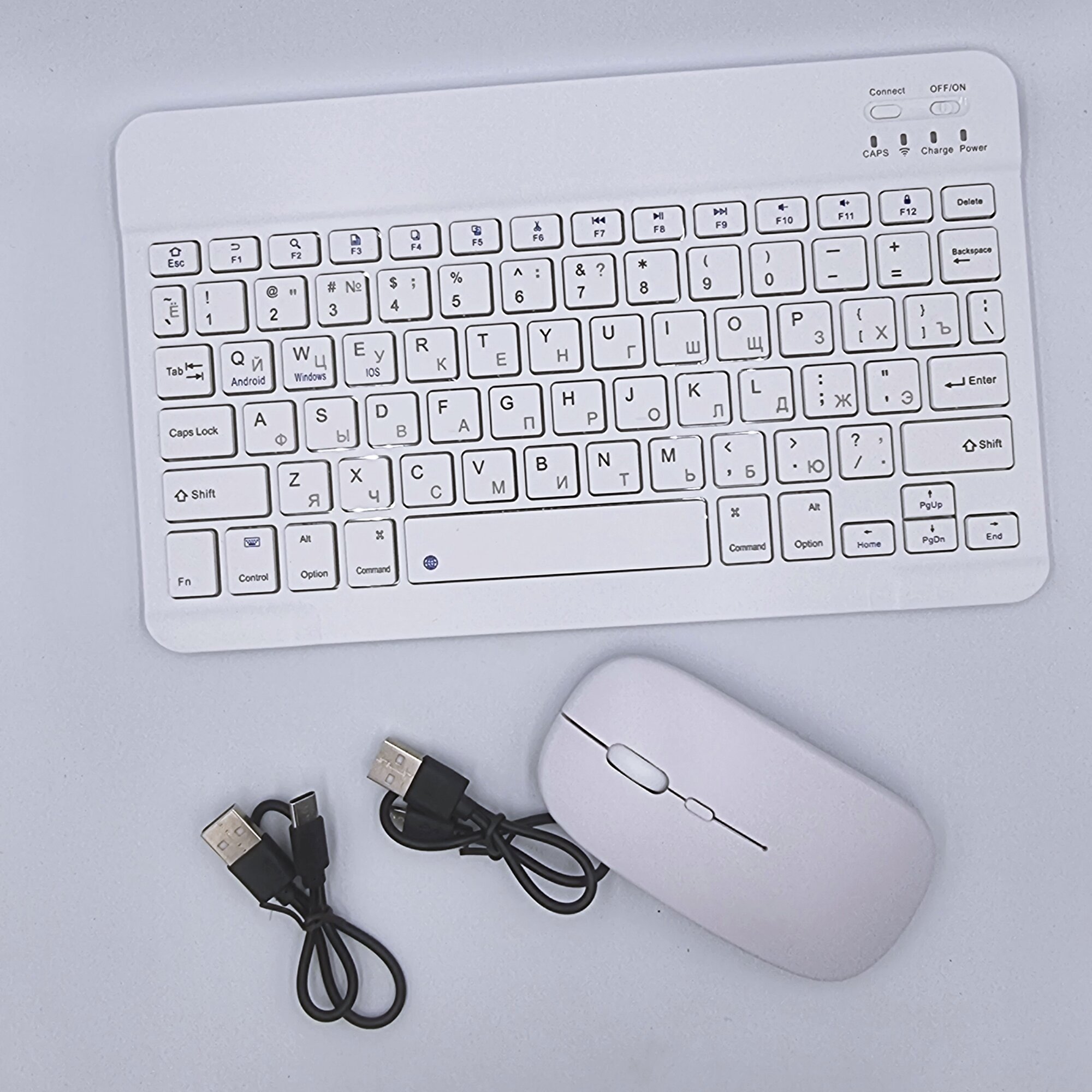 | Особенности | для смартфона, планшета, универсальная беспроводная клавиатура и мышь с зарядкой |