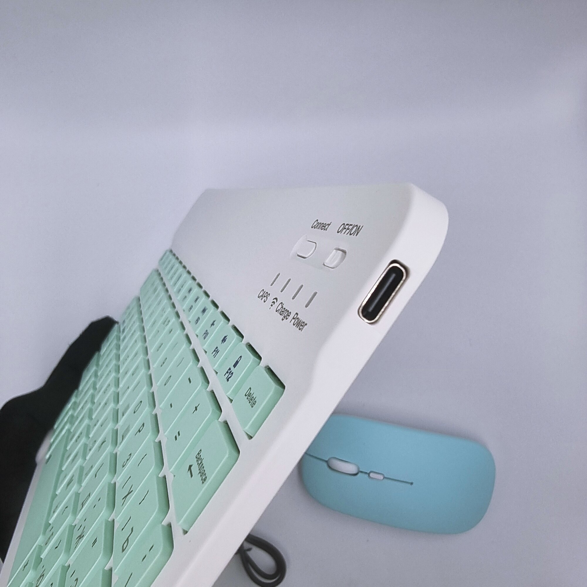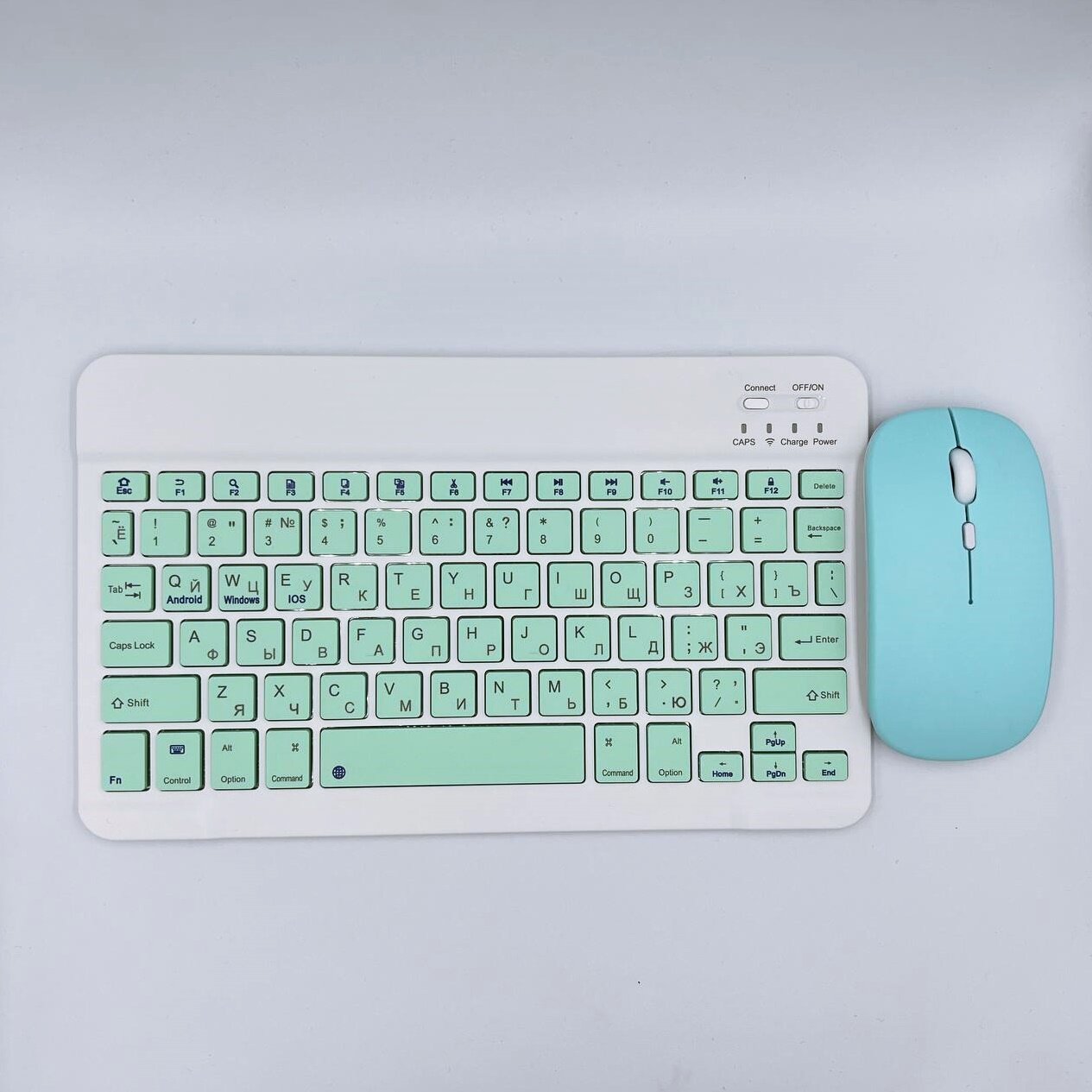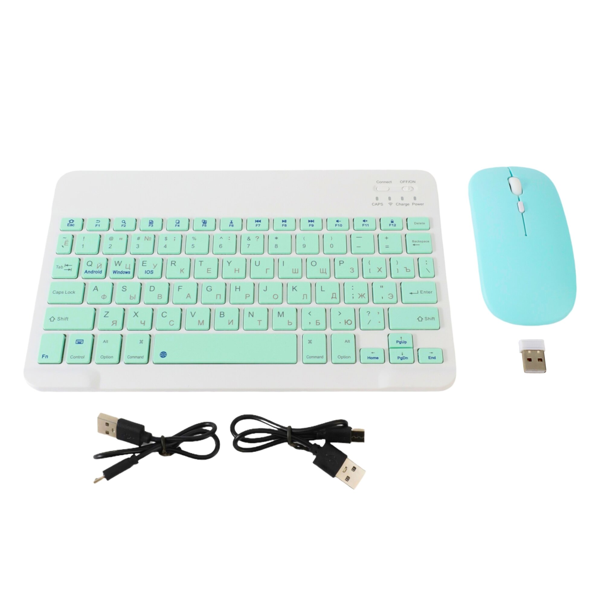 Клавиатура с подсветкой + мышь, Bluetooth, компактная для смартфона, планшета, беспроводная с зарядкой, Vivacat, бирюзовый