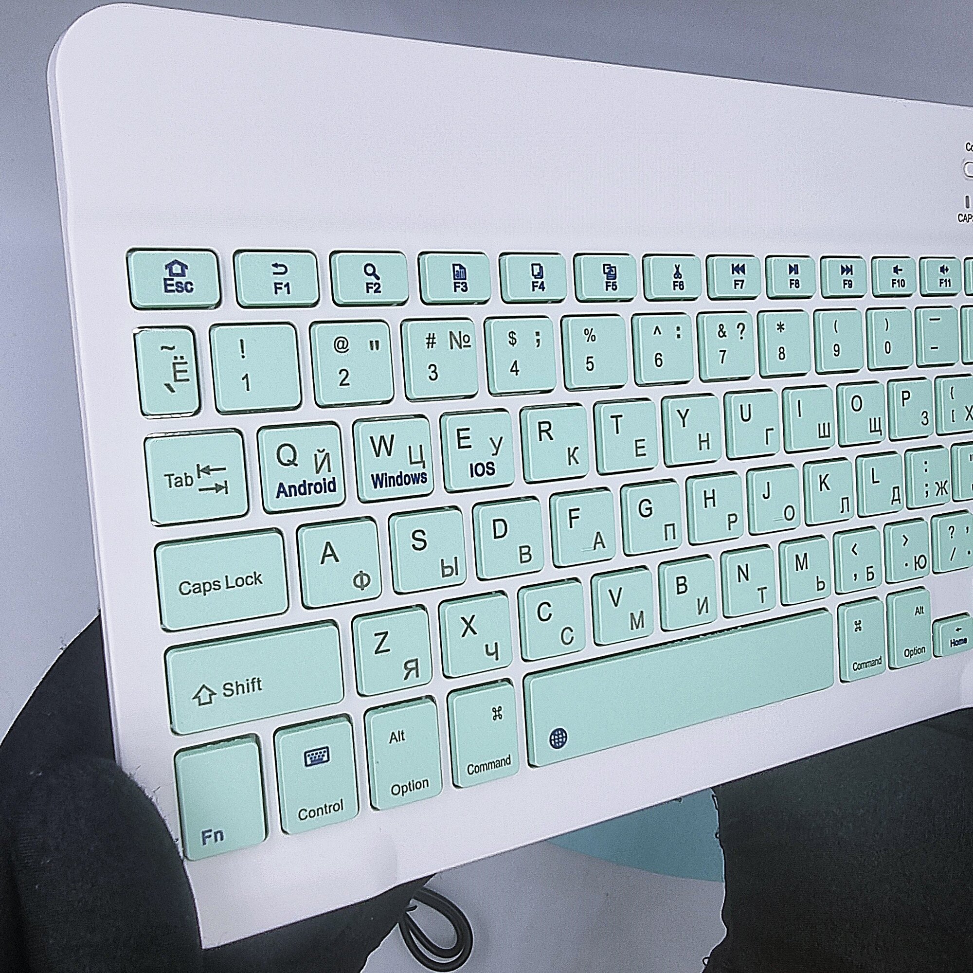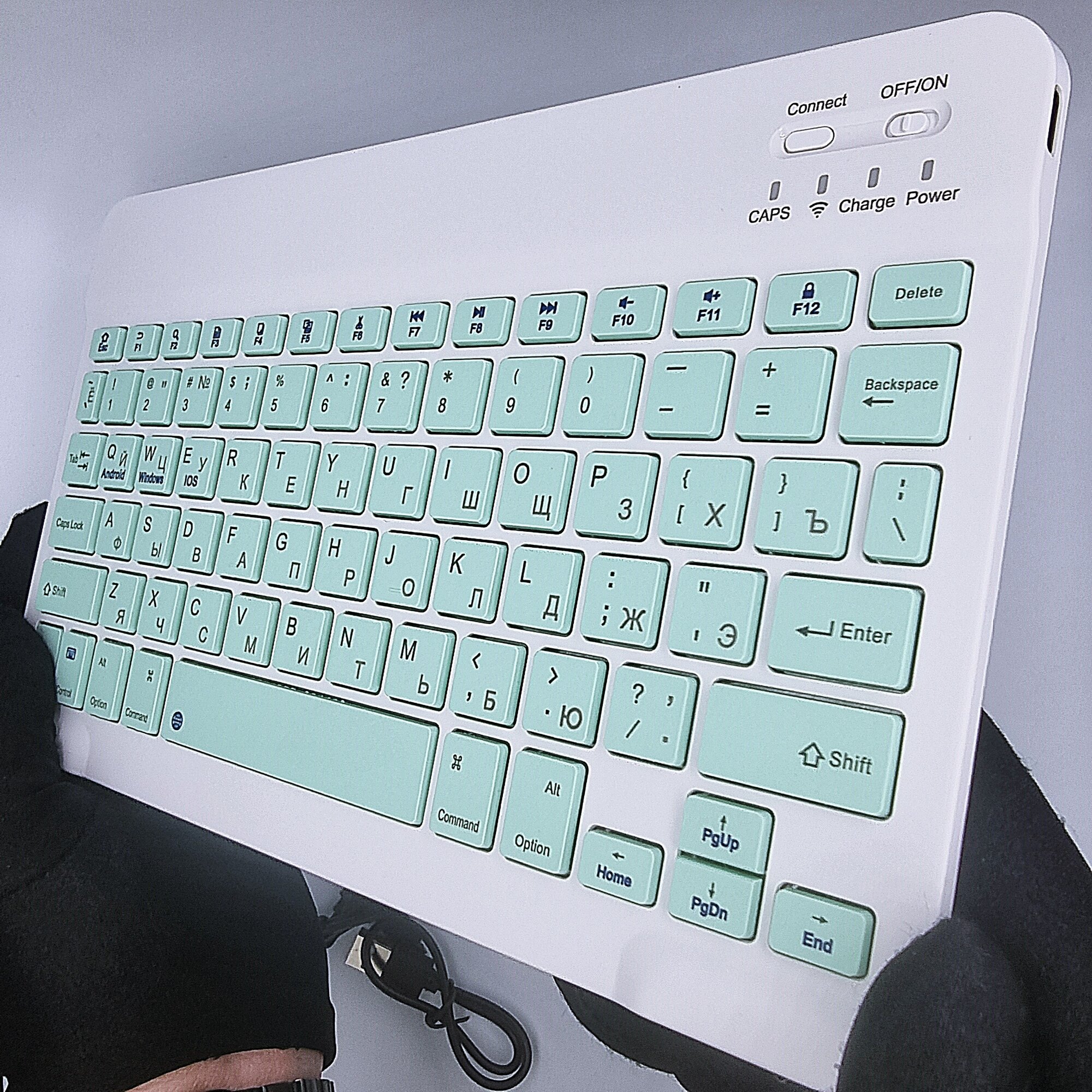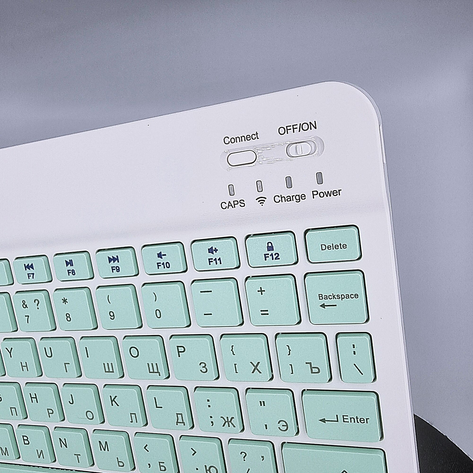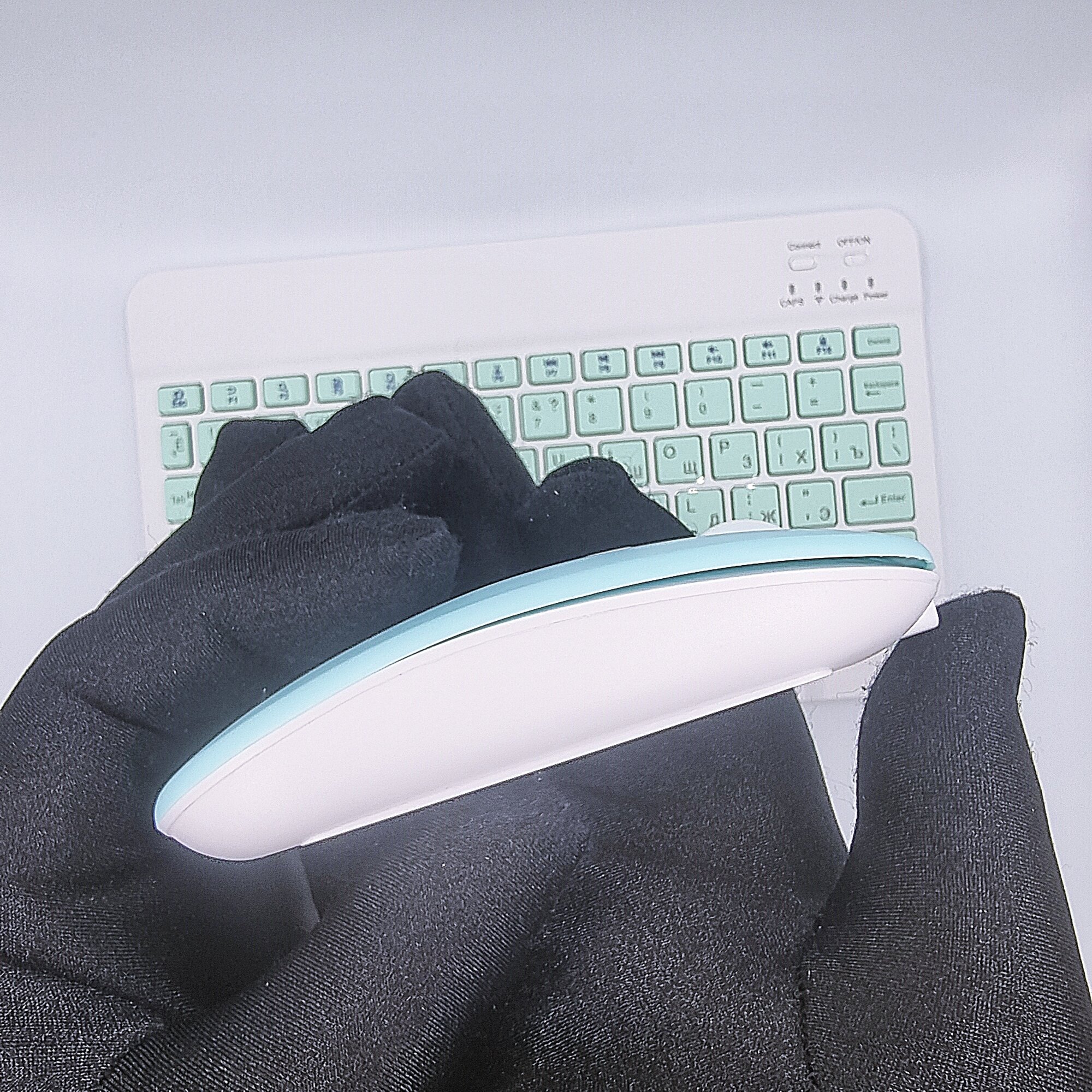 Клавиатура с подсветкой + мышь, Bluetooth, компактная для смартфона, планшета, беспроводная с зарядкой, Vivacat, бирюзовый