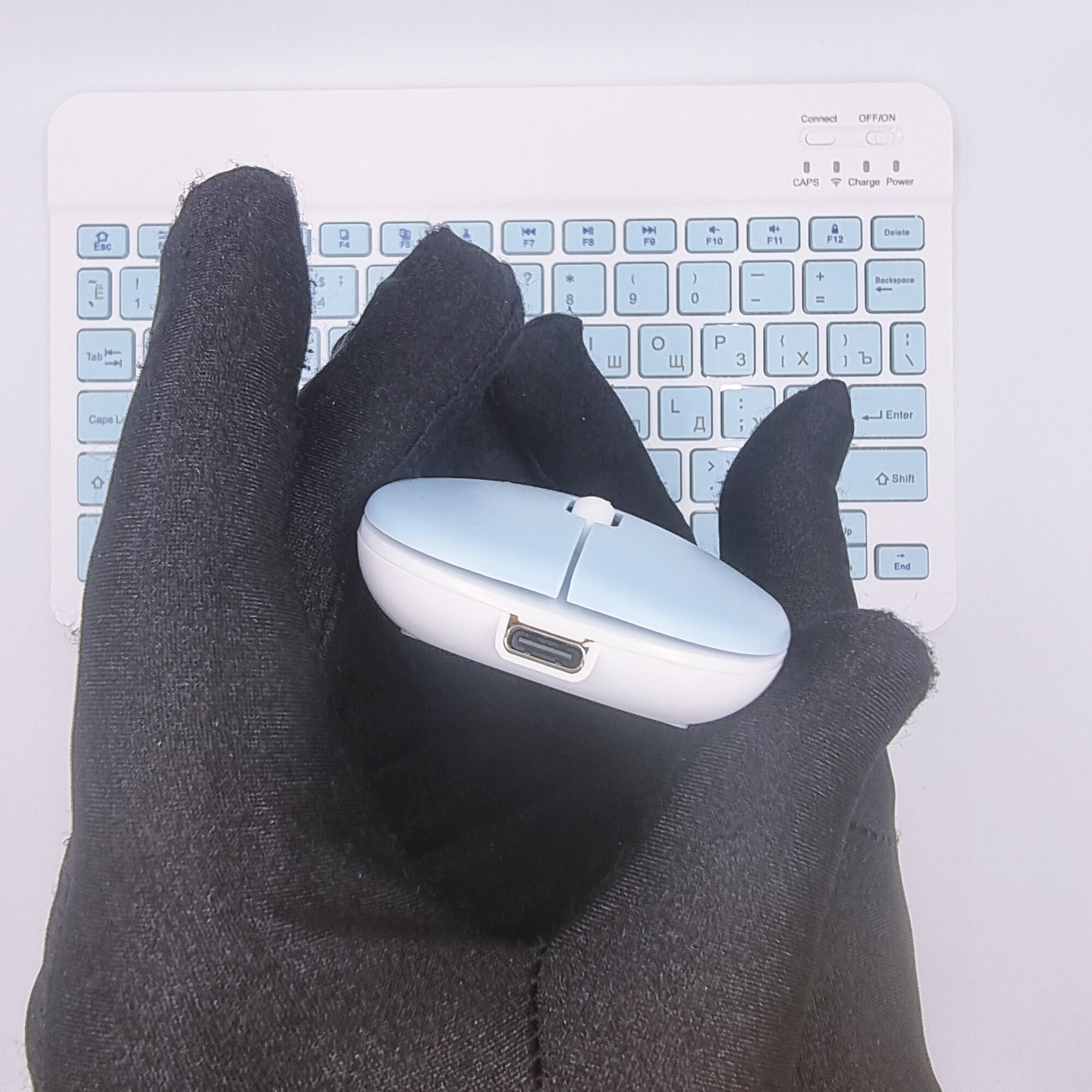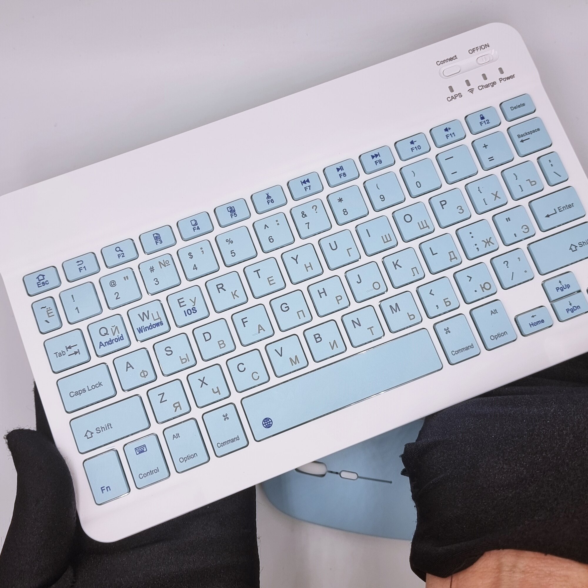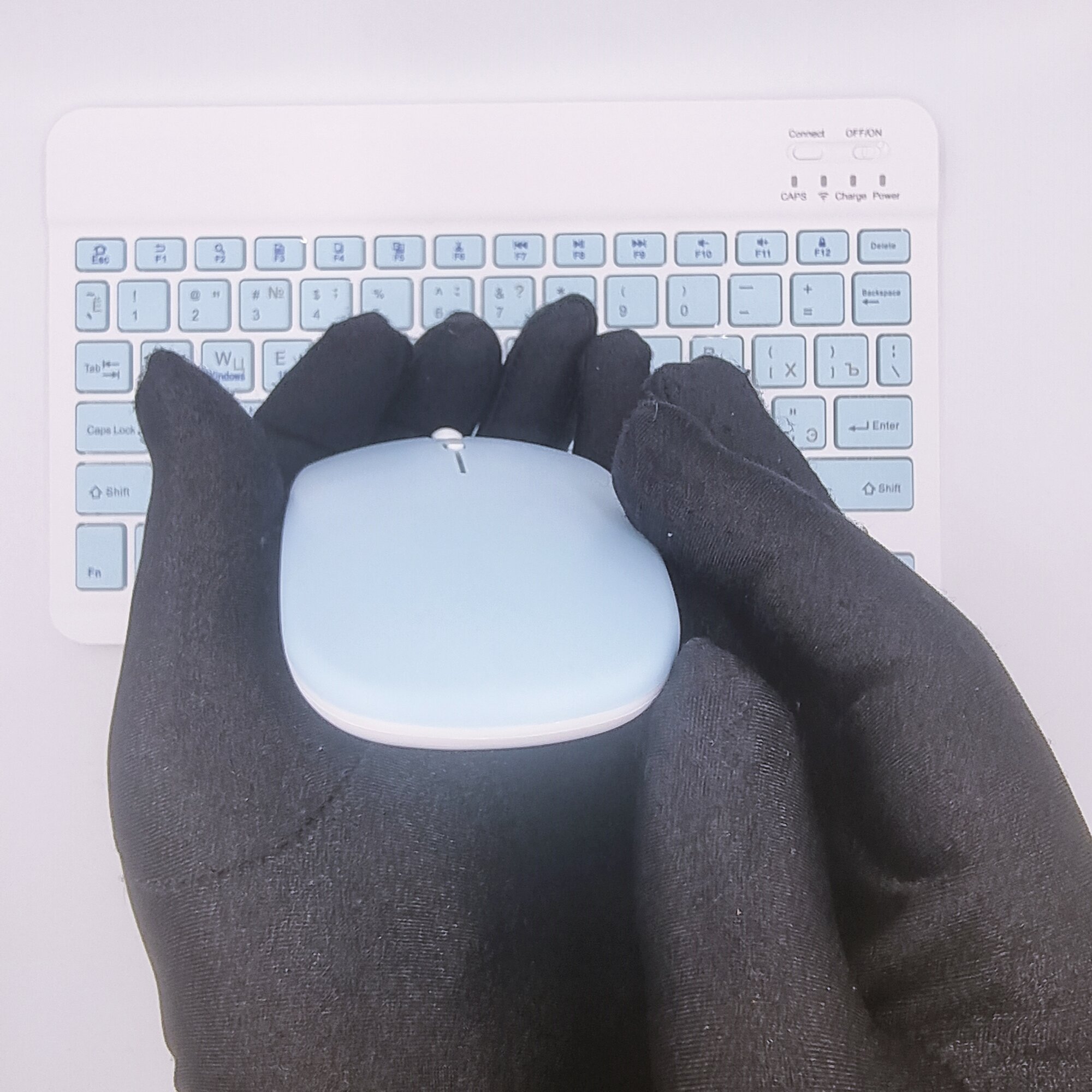 Клавиатура с подсветкой + мышь, Bluetooth, компактная для смартфона, планшета, беспроводная с зарядкой, Vivacat, голубой