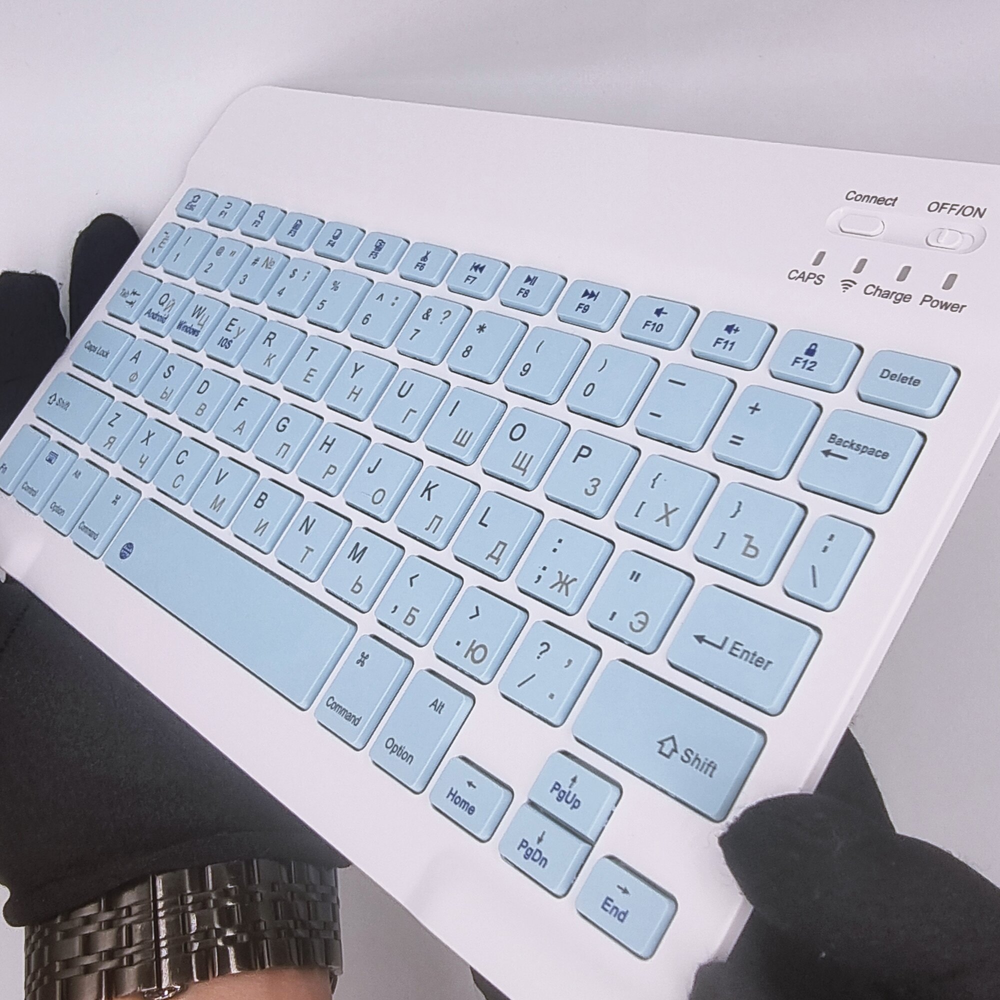 Купить Клавиатура + мышь, Bluetooth, компактная для смартфона, планшета, компьютера, беспроводная с зарядкой, Vivacat, голубой