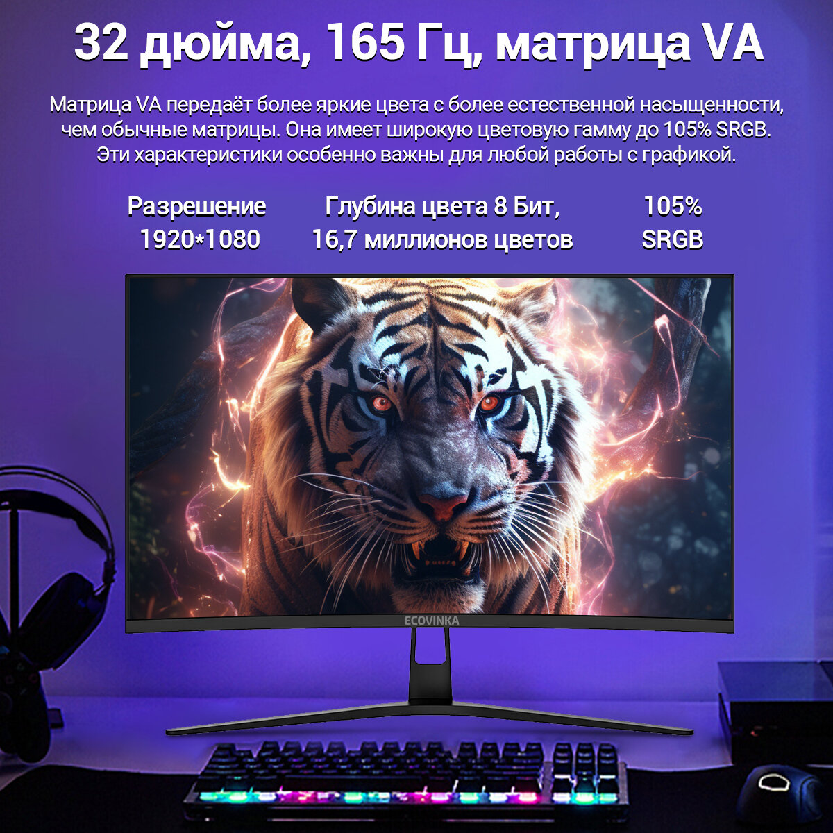 32" ECOVINKA GC32A 165Hz Черный Изогнутый VA монитор 2300R Широкий угол обзора Микро рамка Настенное крепление Изогнутый монитор интересное: