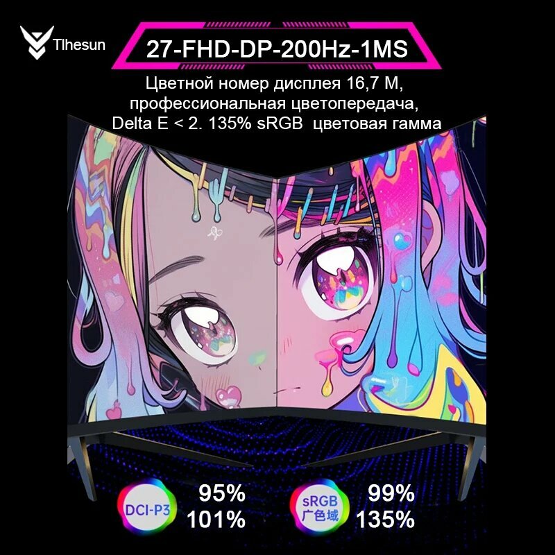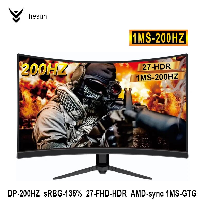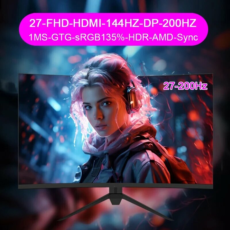 Изогнутый Монитор 27дюйма, 200Гц/ 144Гц Компьютерный игровой экран, Скорость отклика 1MS HDMI/DP-FHD 1920*1080 HDR-ADM-Sync интересное: