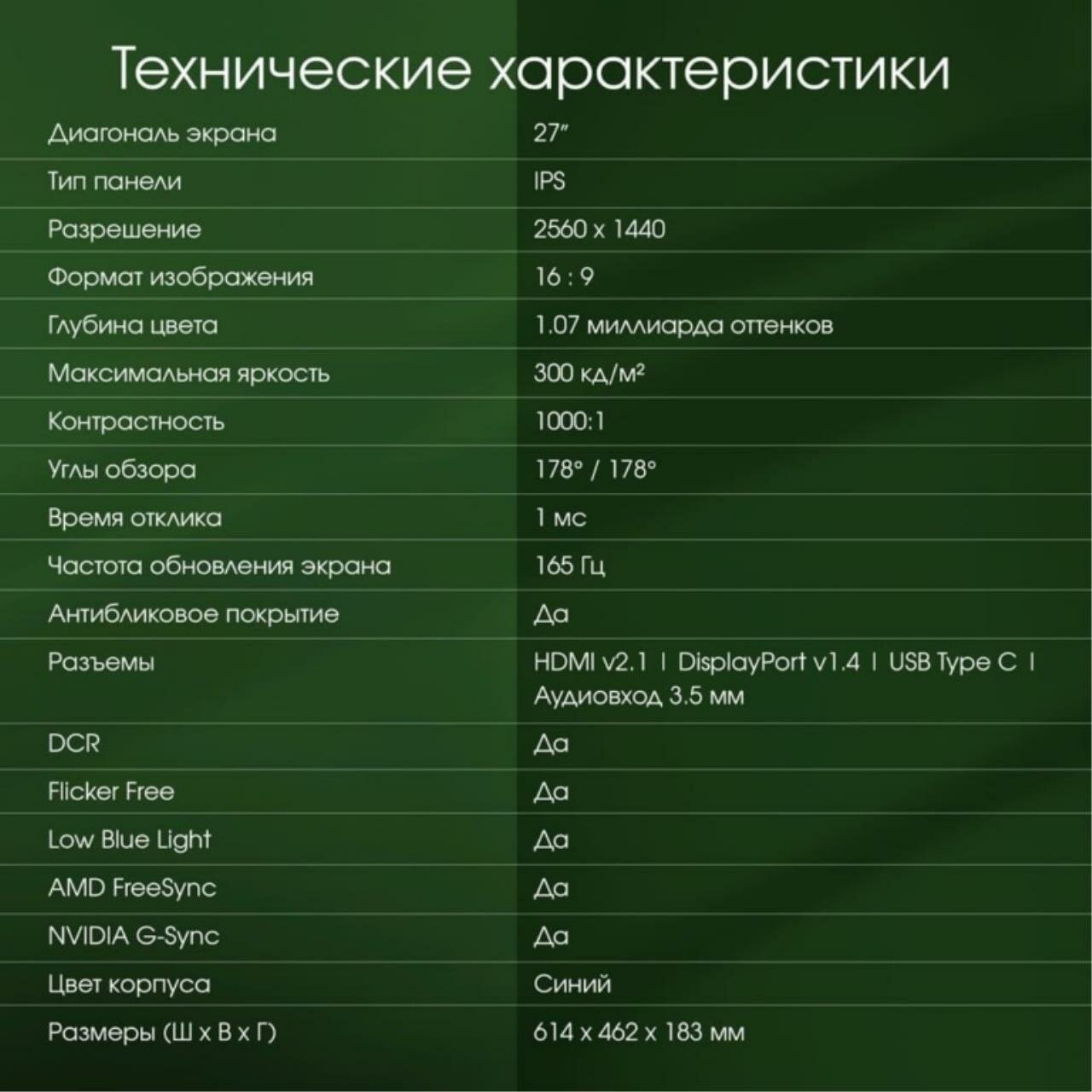 | Макс. частота кадров при макс. разрешении | 165 Гц |
