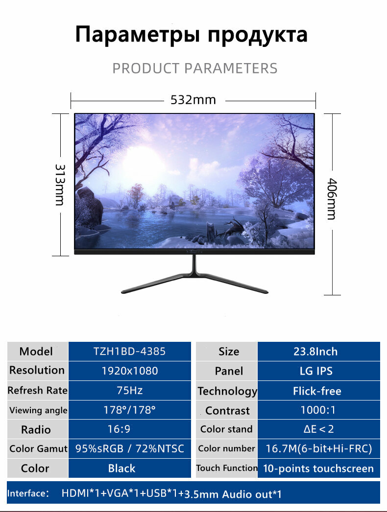 Touchscreen monitor FYHXele 24inch FHD 1080P 60HZ touchscreen monitor HDMI/VGA 98%sRGB IPS LED monitor интересное: