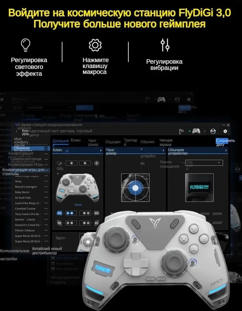 Flydigi APEX 4 - беспроводной кроссплатформенный геймпад (PC, Android, iOS, Switch) интересное: