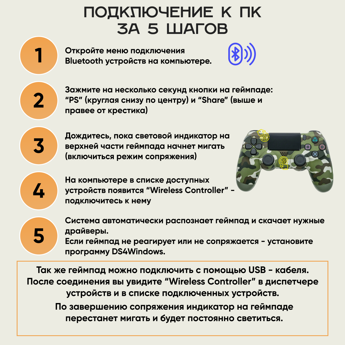 СохранитьГеймпад для PS4 + провод 3 метра / Джойстик контроллер для Playstation 4, PC, Android, iOS Зелёный камуфляж интересное: