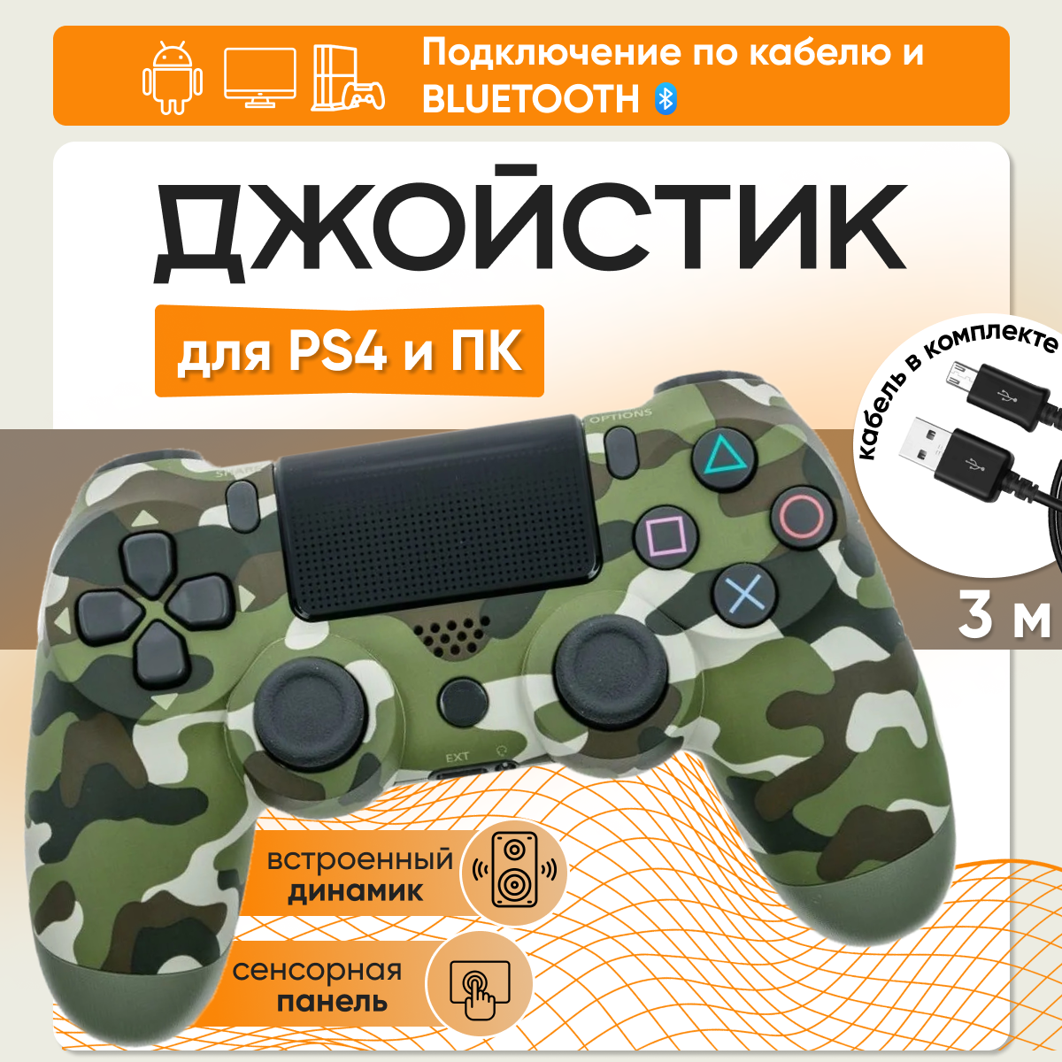 Купить Геймпад для PS4 + провод 3 метра / Джойстик контроллер для Playstation 4, PC, Android, iOS Зелёный камуфляж