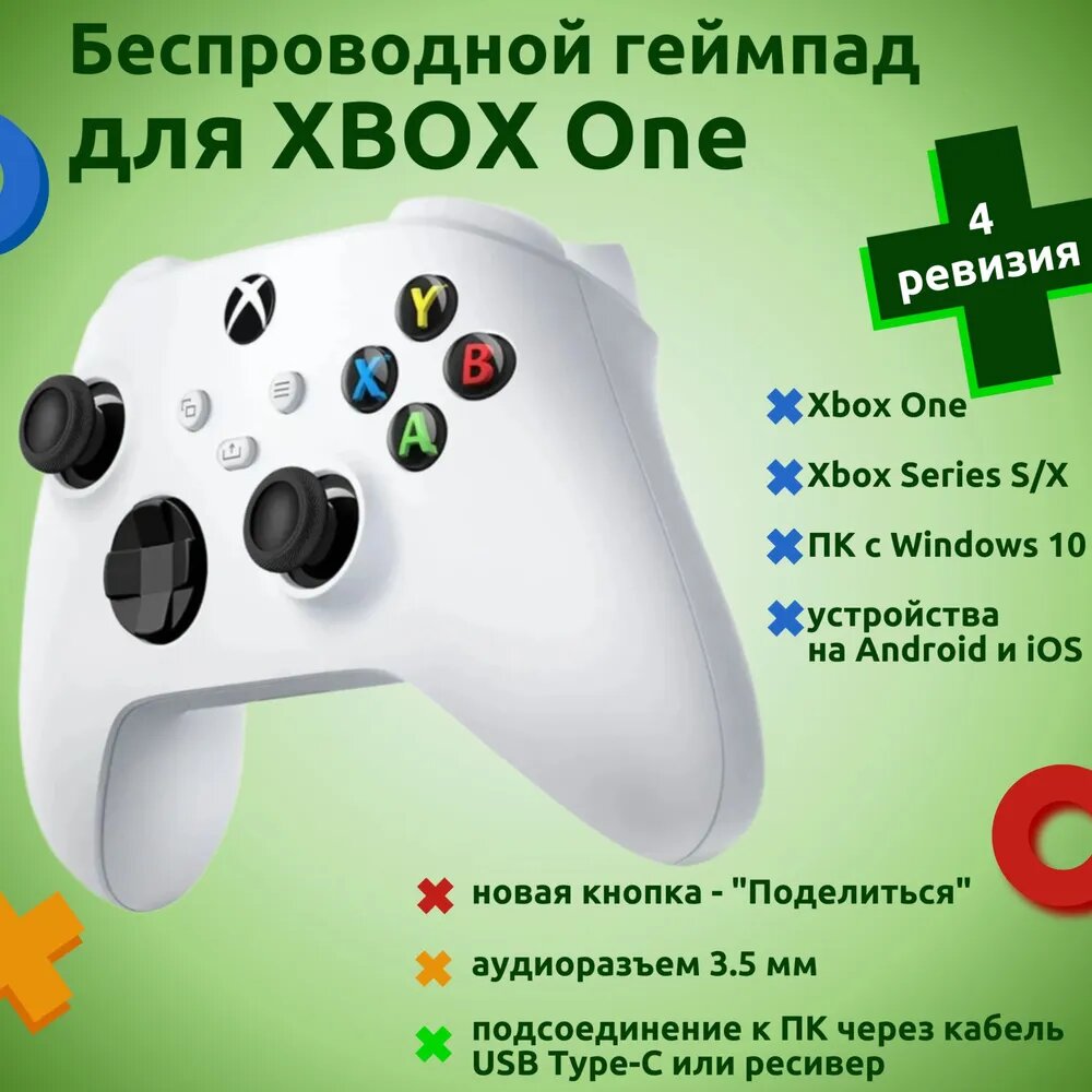Геймпад беспроводной для Xbox One, Series X/S, с Bluetooth, белый (модель 1914, 4 ревизия) интересное: