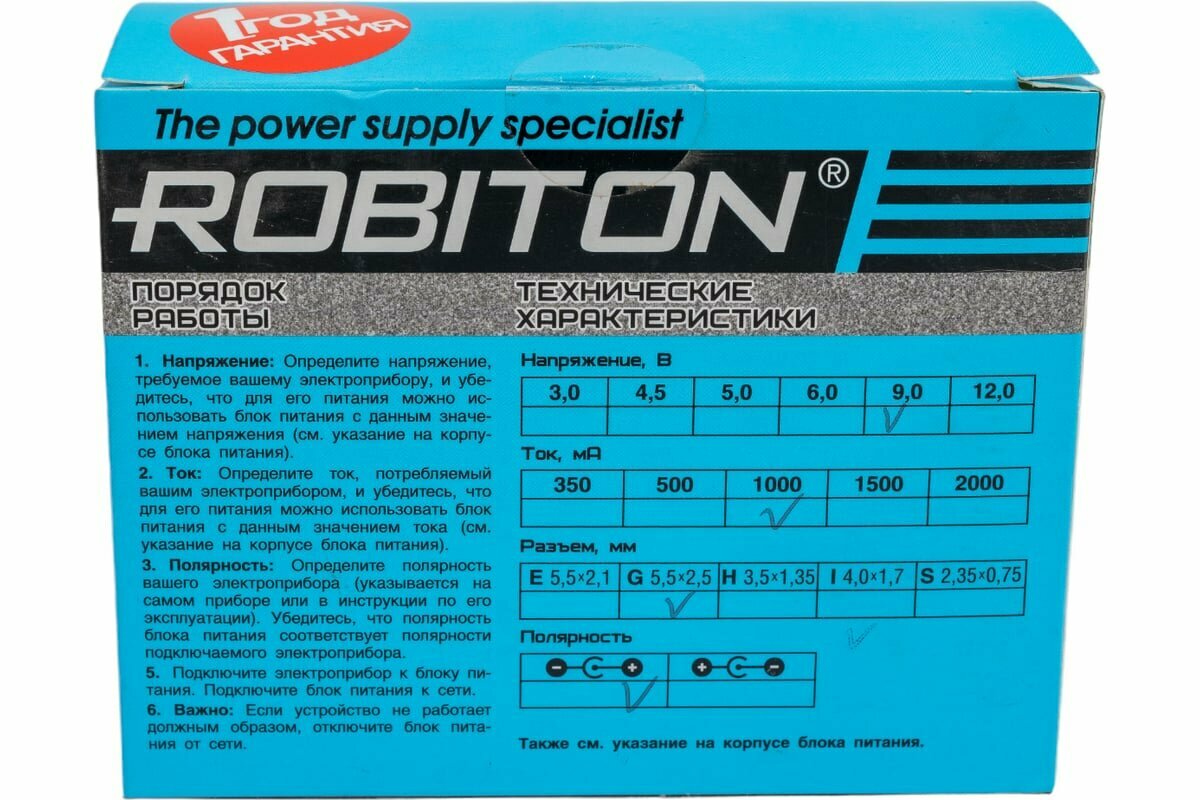 Адаптер-блок питания ROBITON IR9-9W 15696, 9В 1А, штекер 5.5х2.5/12мм, импульсный, положительная полярность интересное: