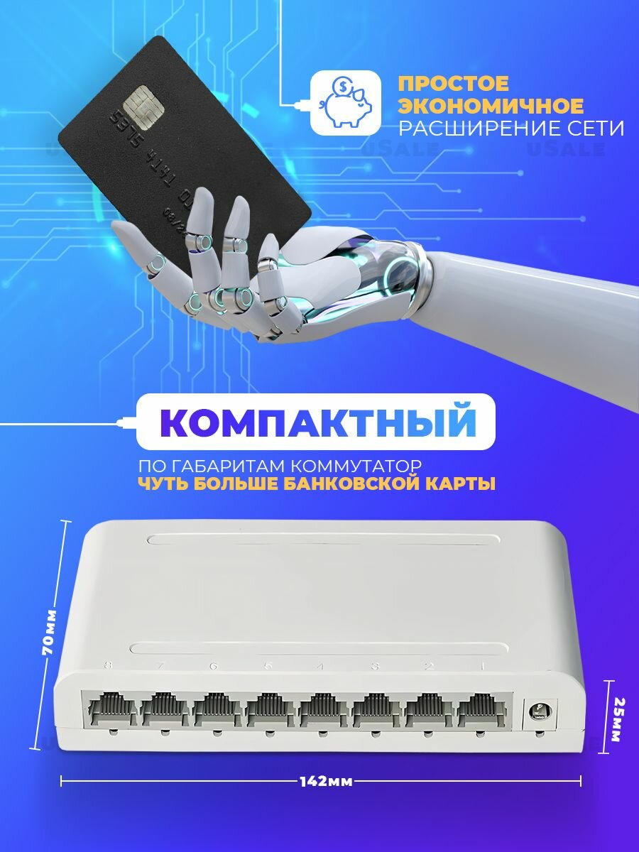 Коммутатор 8 портовый 10/100мбит. 1.7гбит общая пропускная спобосность интересное: