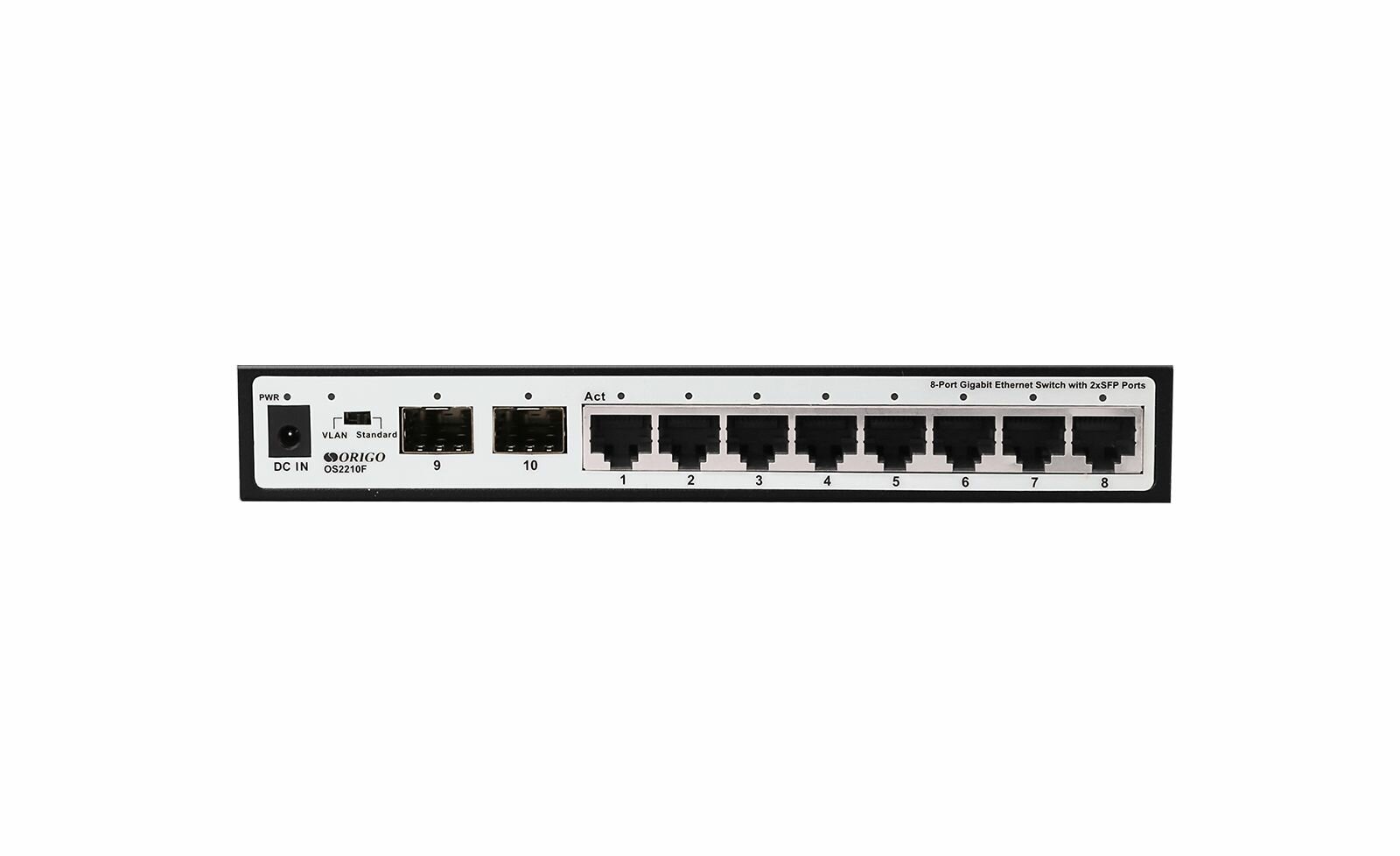 Неуправляемый коммутатор ORIGO OS2210F, 8x1000Base-T, 2x1000Base-X SFP