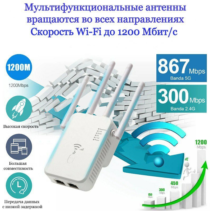 Усилитель Wifi 2.4 и 5 ГГц, репитер WI-FI точка доступа ,белый интересное: