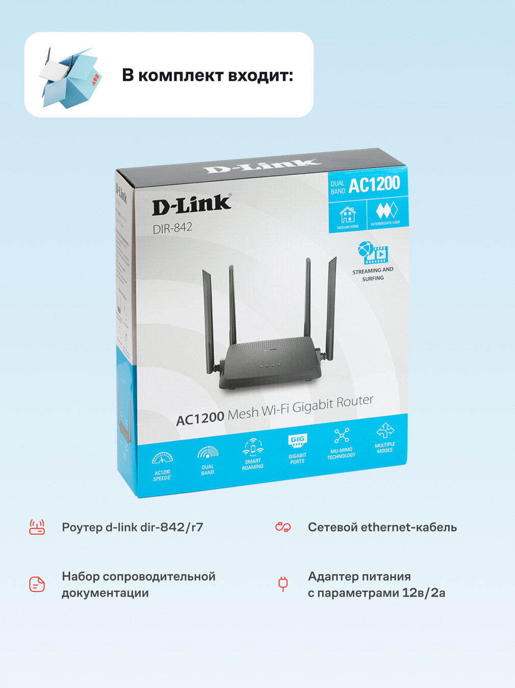Ниже Вы можете прочитать отзывы на Маршрутизатор Wi-Fi роутер D-Link DIR-842/R7 черный, ознакомится с подробными характеристиками, посмотреть интересные обзоры и фотографии на Маршрутизатор Wi-Fi роутер D-Link DIR-842/R7 черный.