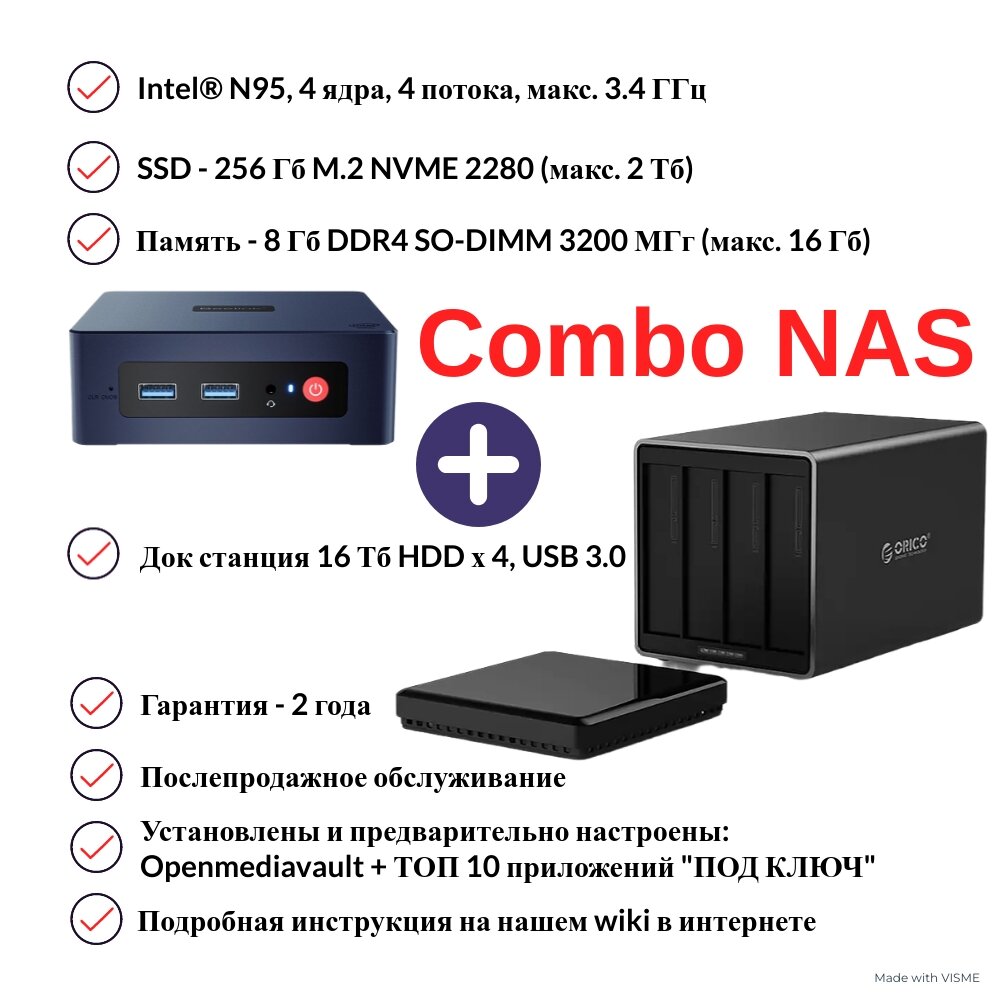 Сетевое хранилище/сервер для дома и малого бизнеса ComboNAS N95_NS400U3 интересное:
