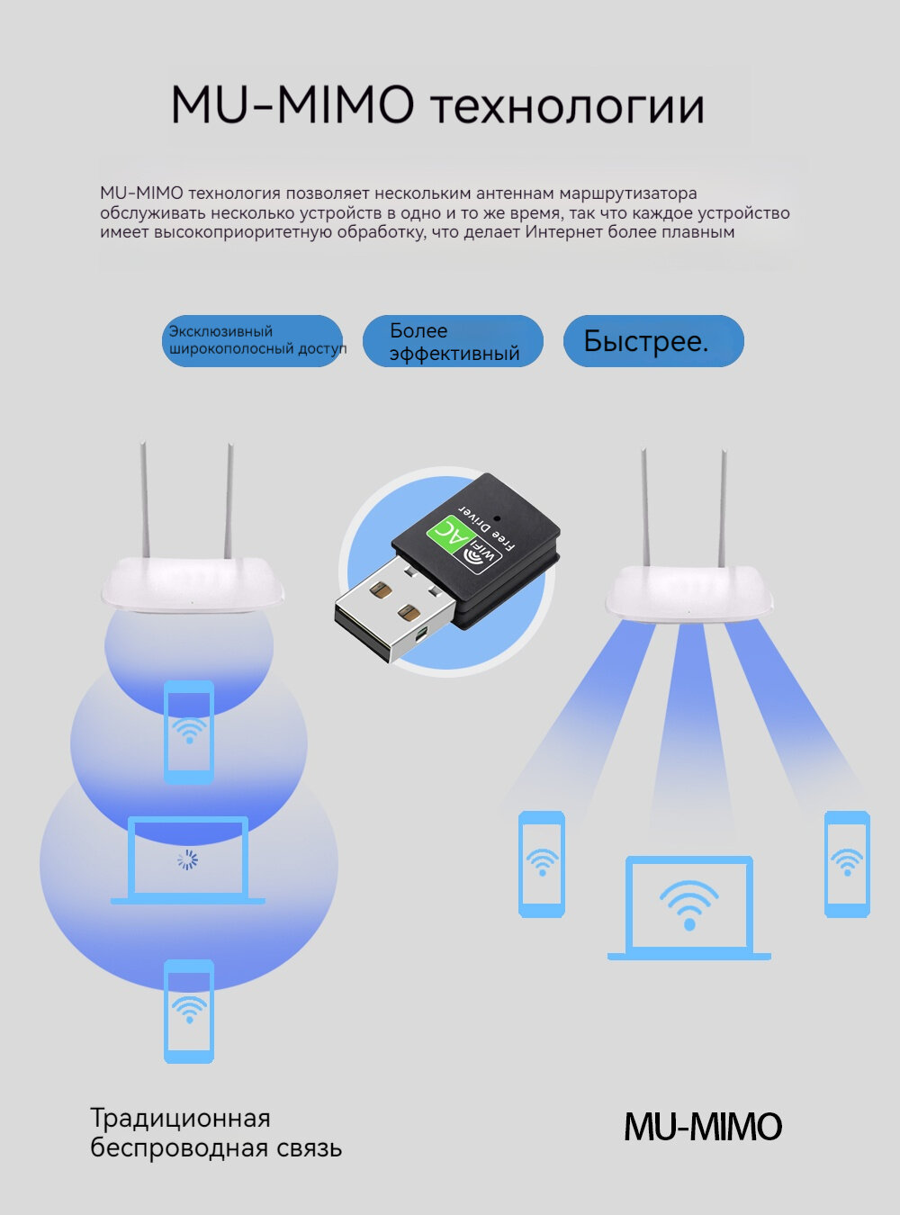 Адаптер Cswur USB WiFi n/g/b/ac 650M, 2.4GHz+5GHz, 802.11ac интересное: