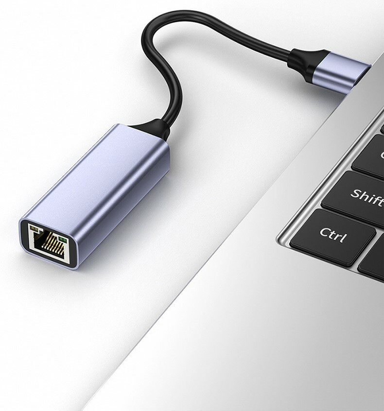 Сетевая карта адаптер Type C 2.0/3/0 to RJ45 ( Ethernet LAN) 1 Gigabit серый