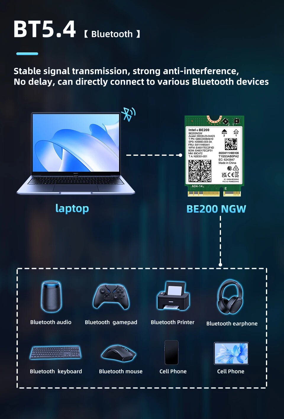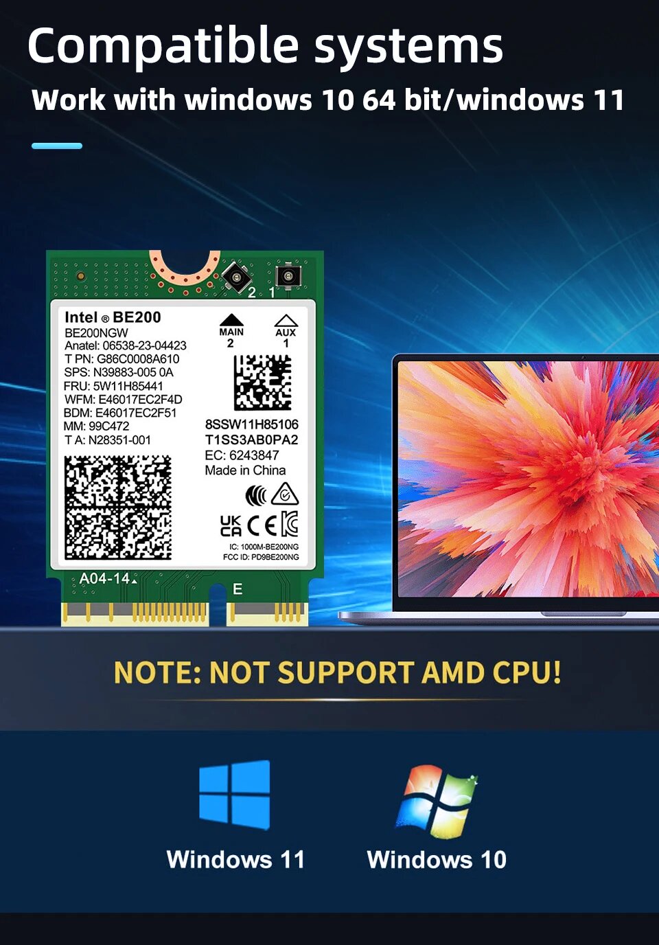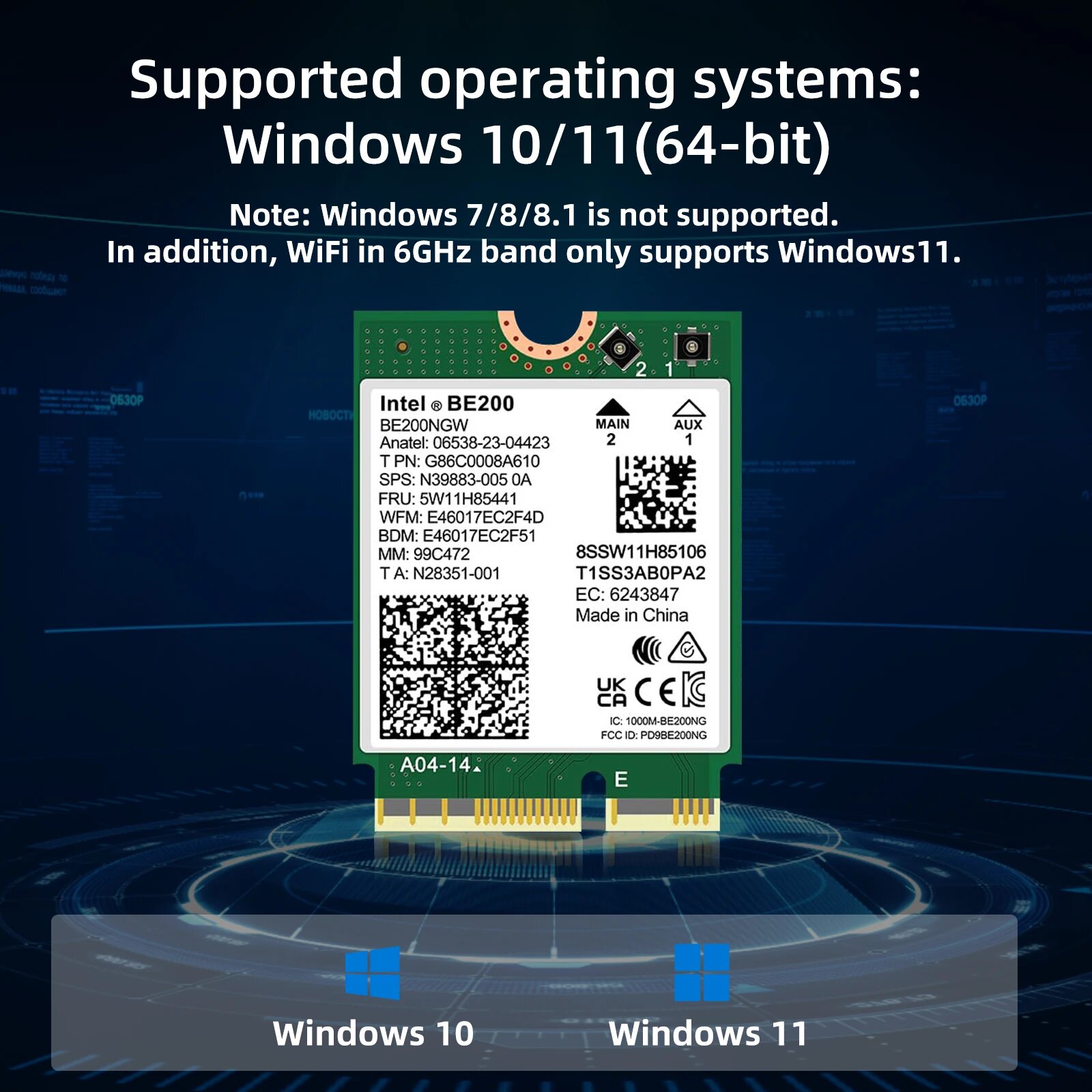 WiFi 7 Intel BE200 NGW Wi-Fi модуль для ноутбука M.2 NGFF Windows 10/11 (64 бит) интересное: