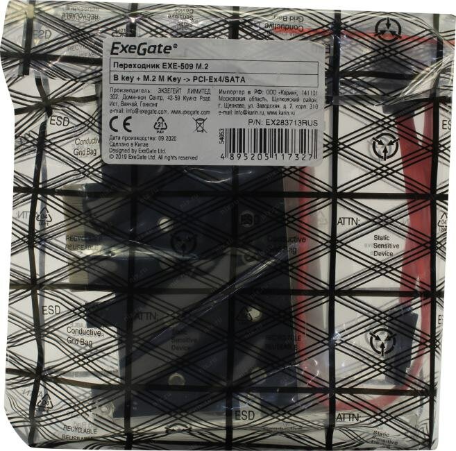 EXEGATE Переходник EX283713RUS Переходник EXE-509 M.2 B key + M.2 M Key -> PCI-Ex4 SATA