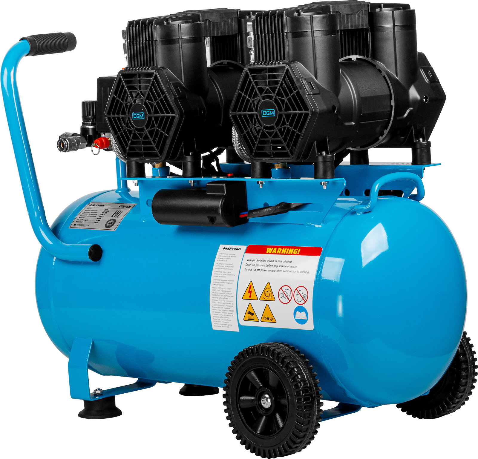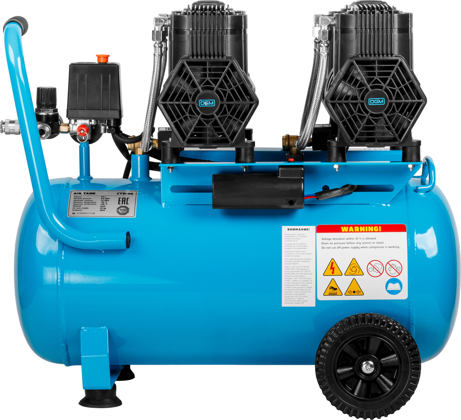 Компрессор воздушный безмасляный DGM AC-6100LD (450л/мин, 8атм, коаксильный, электр. блок упр, 100л, 230В, 2,4кВт) (DG2720-3)