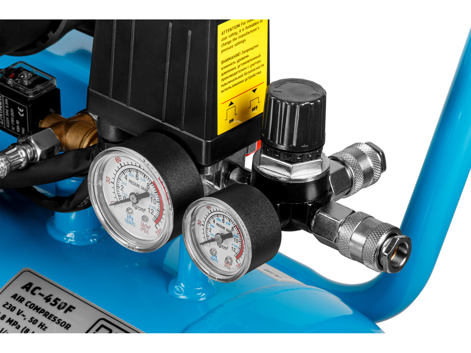 | Минусы: | Клапан слива конденсата немного сбоку а не в низу ресивера!, отсутствует на ресивере штуцер/заглушка для подключения доп. ресивера минуя редуктор давления. Но это все мелочи. |