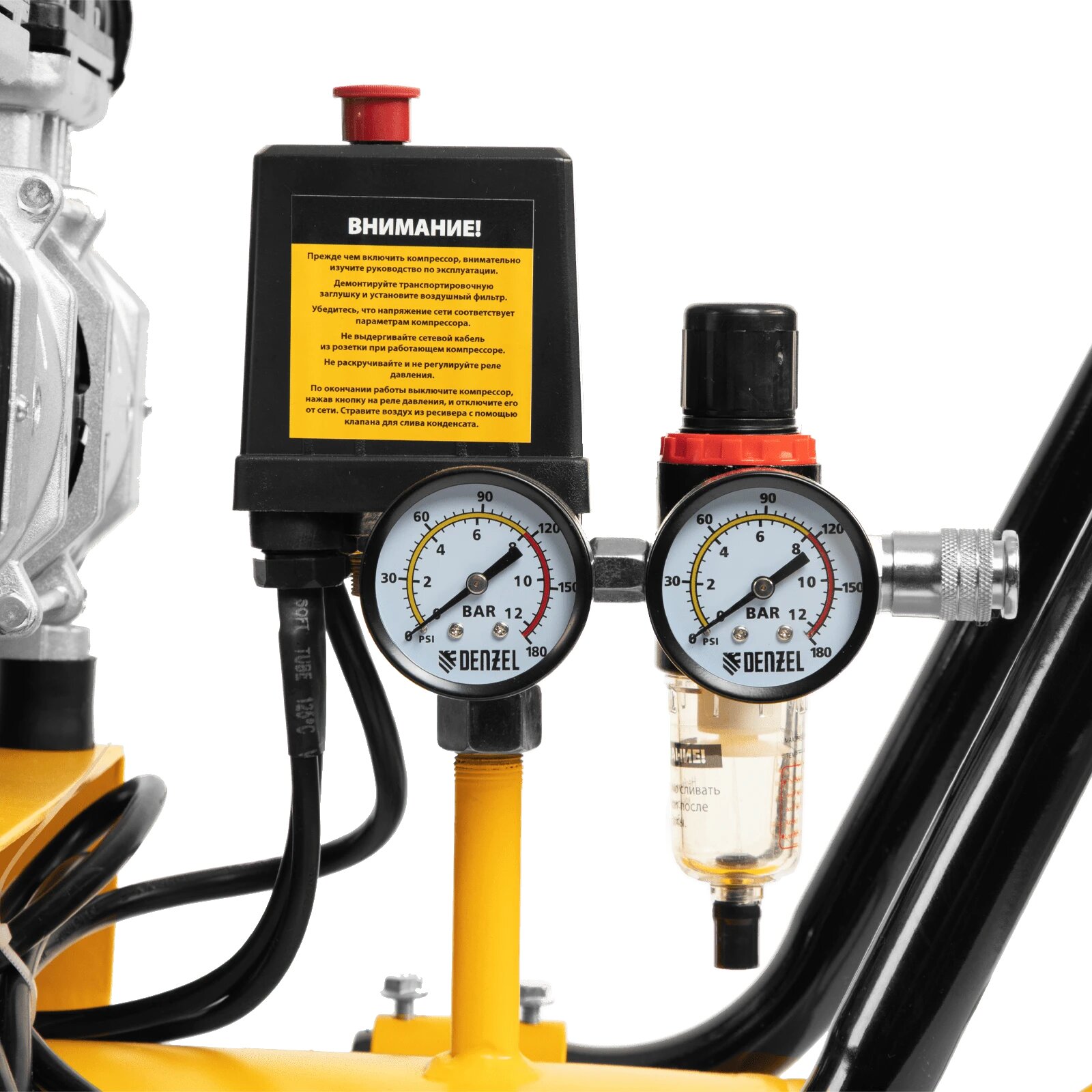 Купить Компрессор безмаслянный малошумный Denzel DLS 3300/100 3300 Вт, 3х1100, 100 л, 570 л/мин блок упр 58032