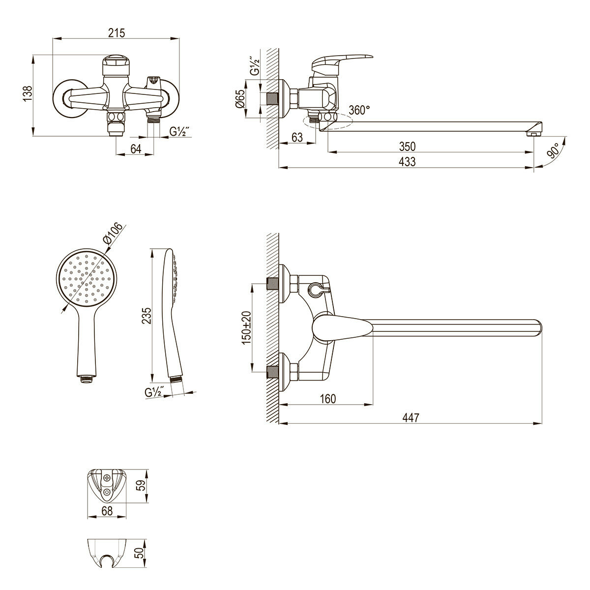 | Особенности | S-образные эксцентрики / аэратор / держатель душевой лейки / поворотный излив / Лейка / Ограничитель расхода / Поворотный |