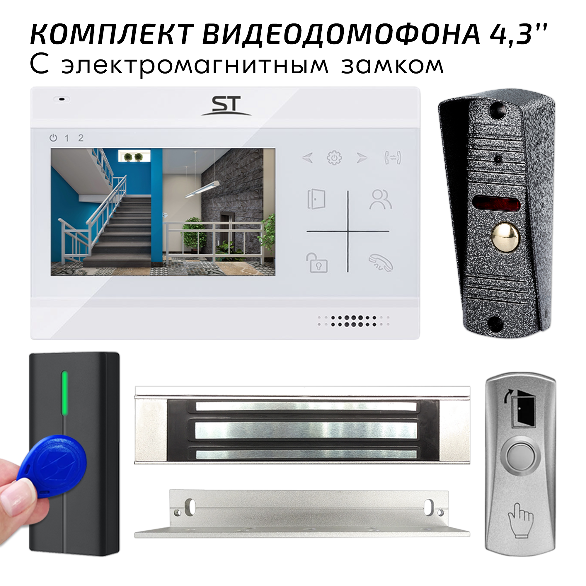 Купить Видеодомофон для дома (белый), 4.3 дюйма - комплект с электромагнитным замком