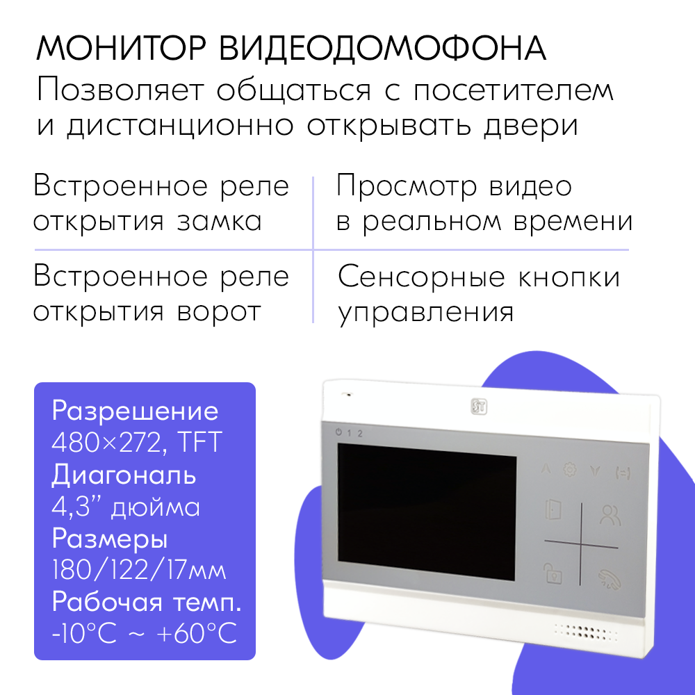 Видеодомофон для дома (белый), 4.3 дюйма - комплект с электромагнитным замком интересное: