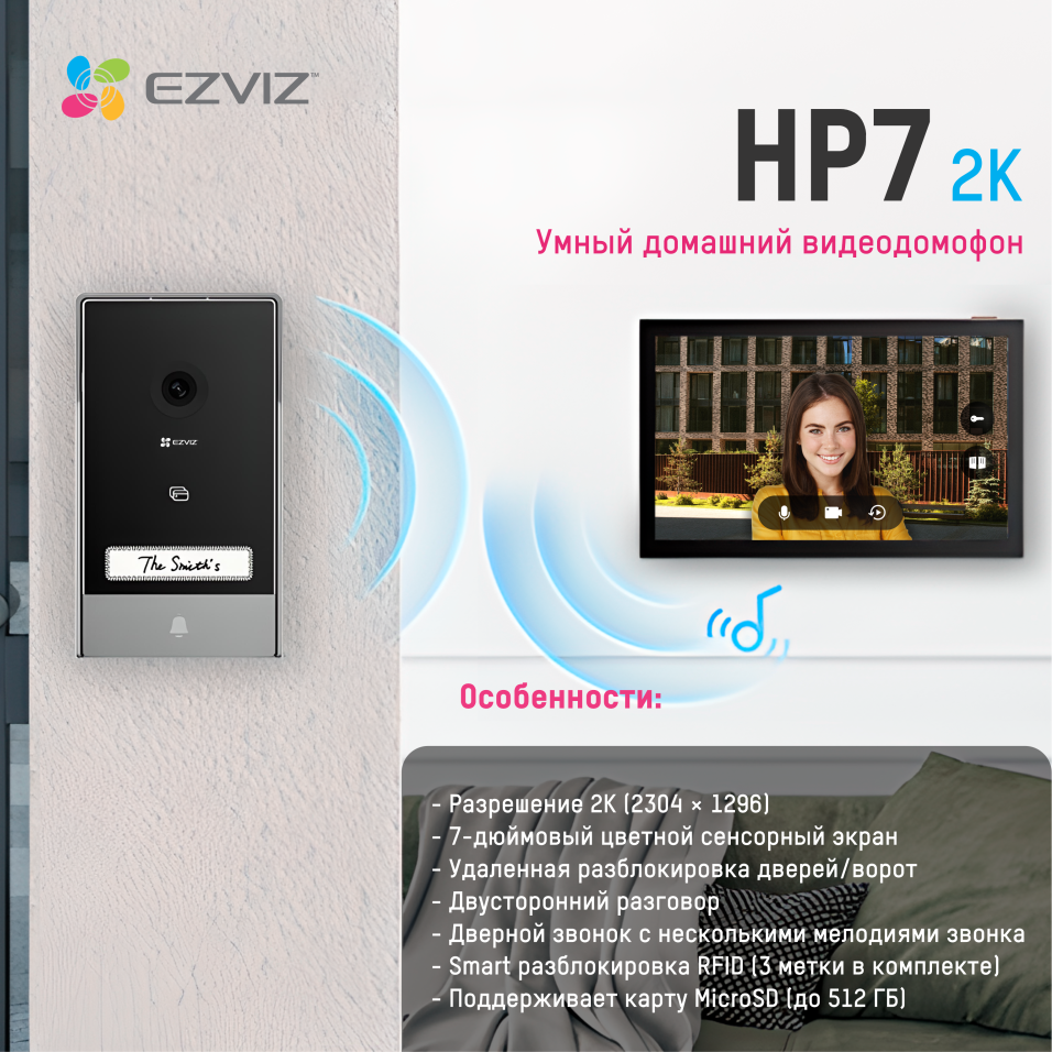 EZVIZ HP7 - Комплект умного 2К видеодомофона с открытием двери/ворот, детекцией человека, сенсорным дисплеем, управлением через приложение и записью на карту памяти интересное: