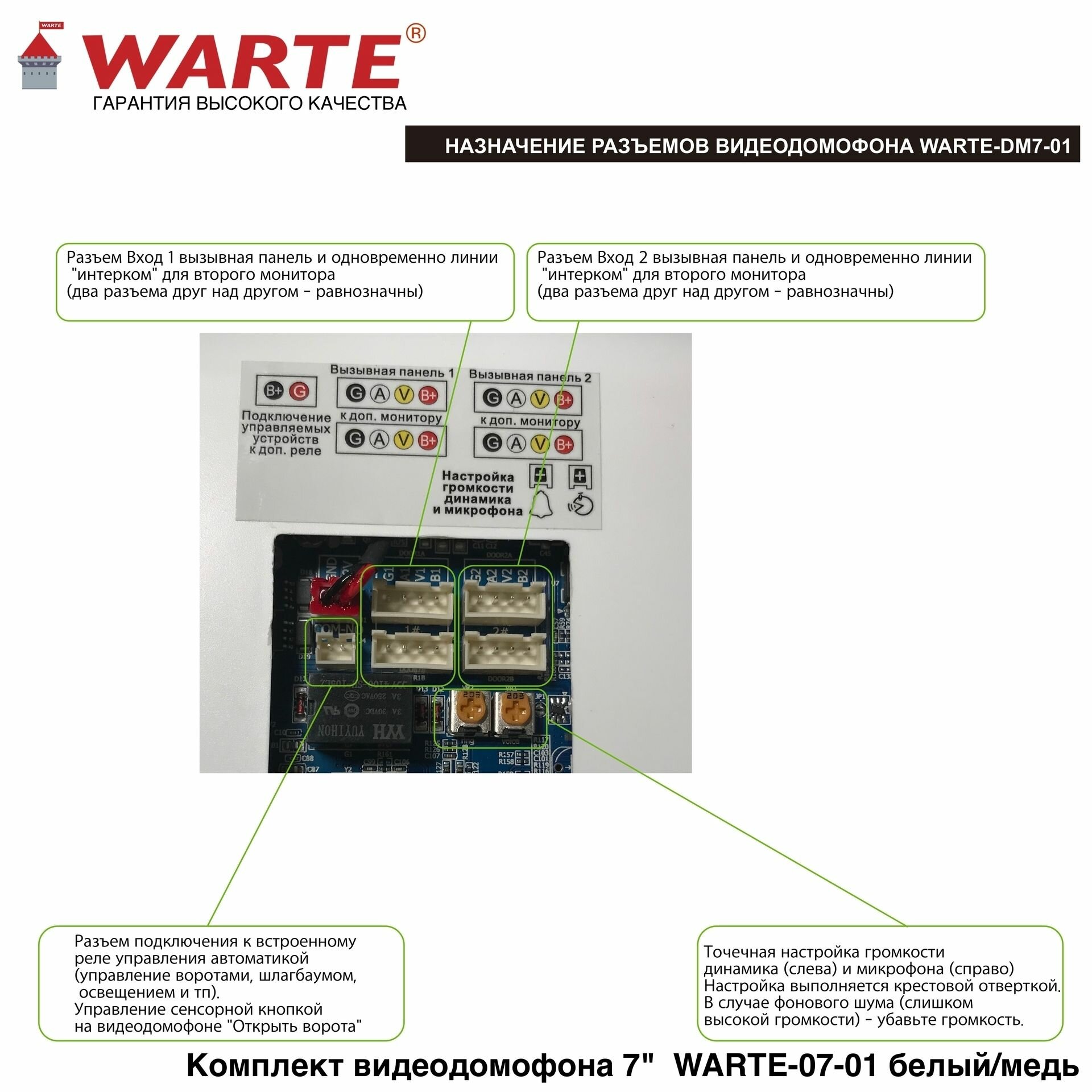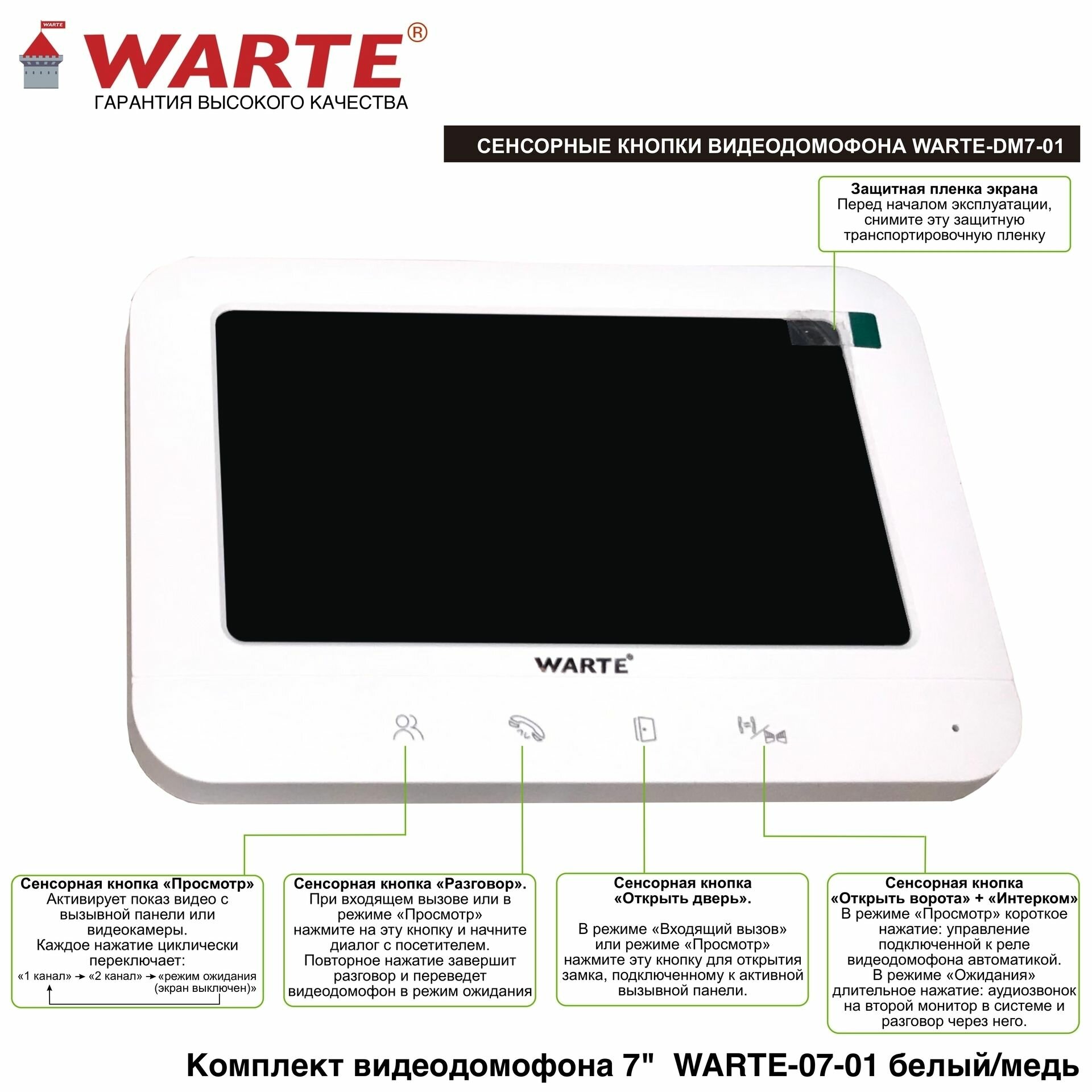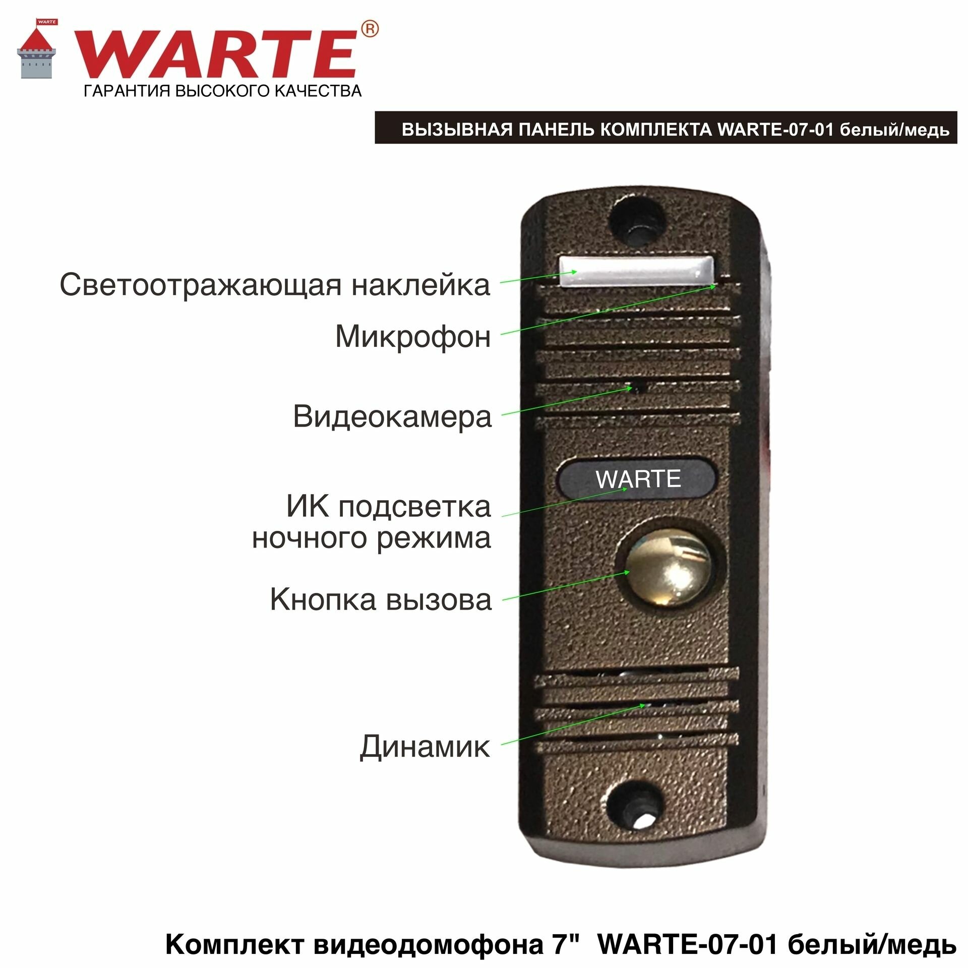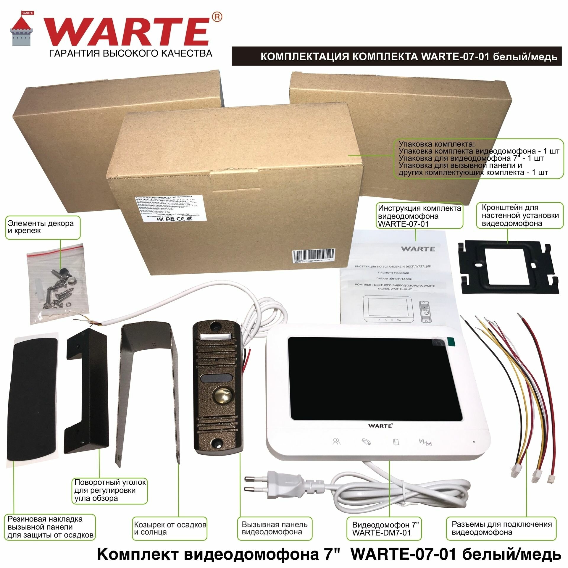 WARTE-07-01 (белый/медь) - комплект видеодомофона для квартиры, дома или офиса, монитор 7" + вызывная панель интересное: