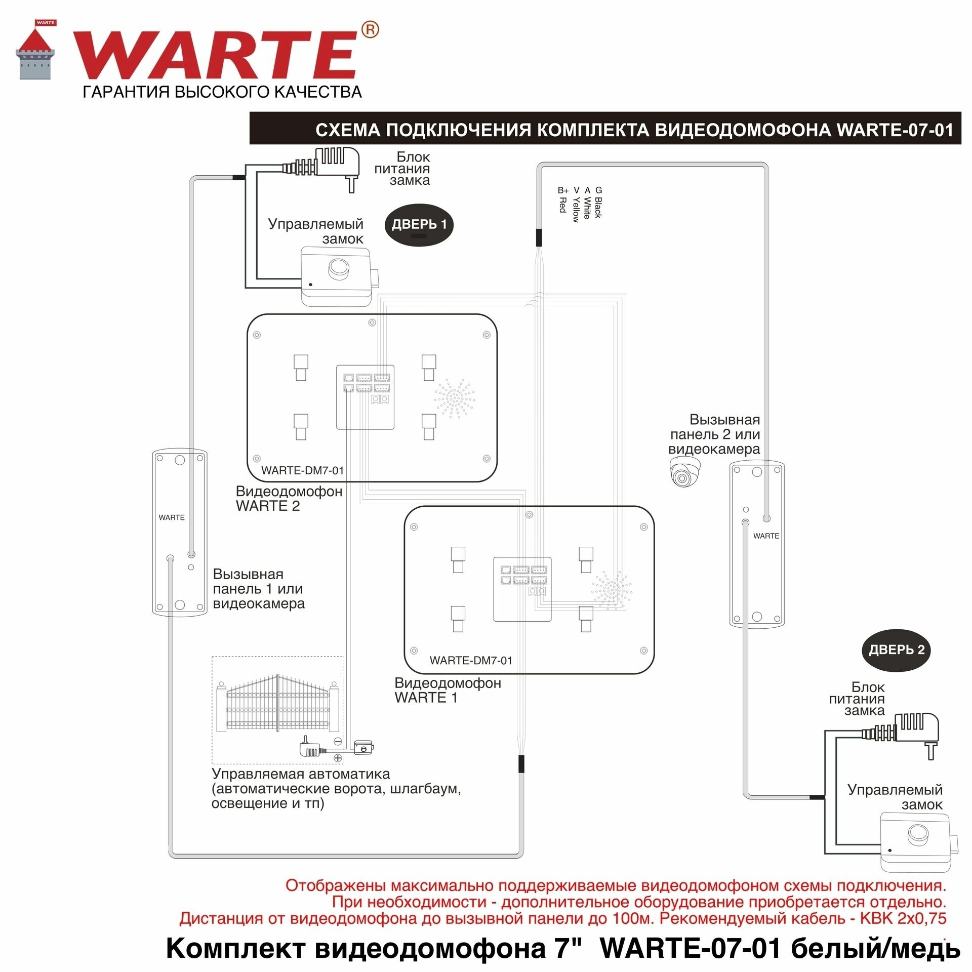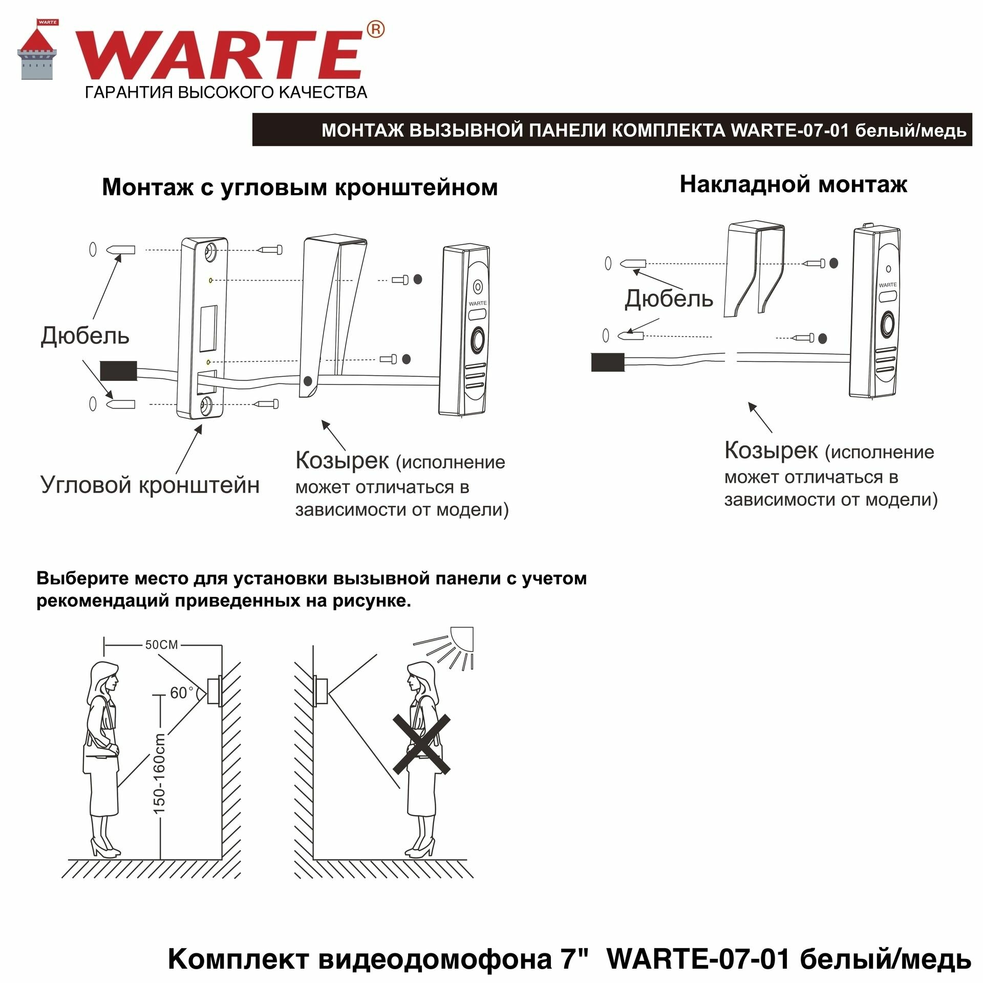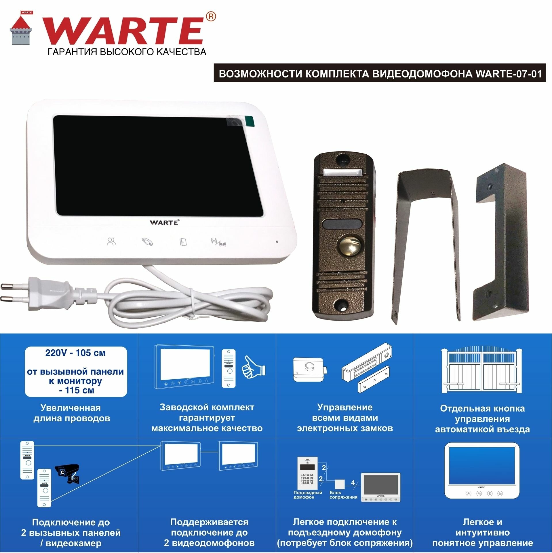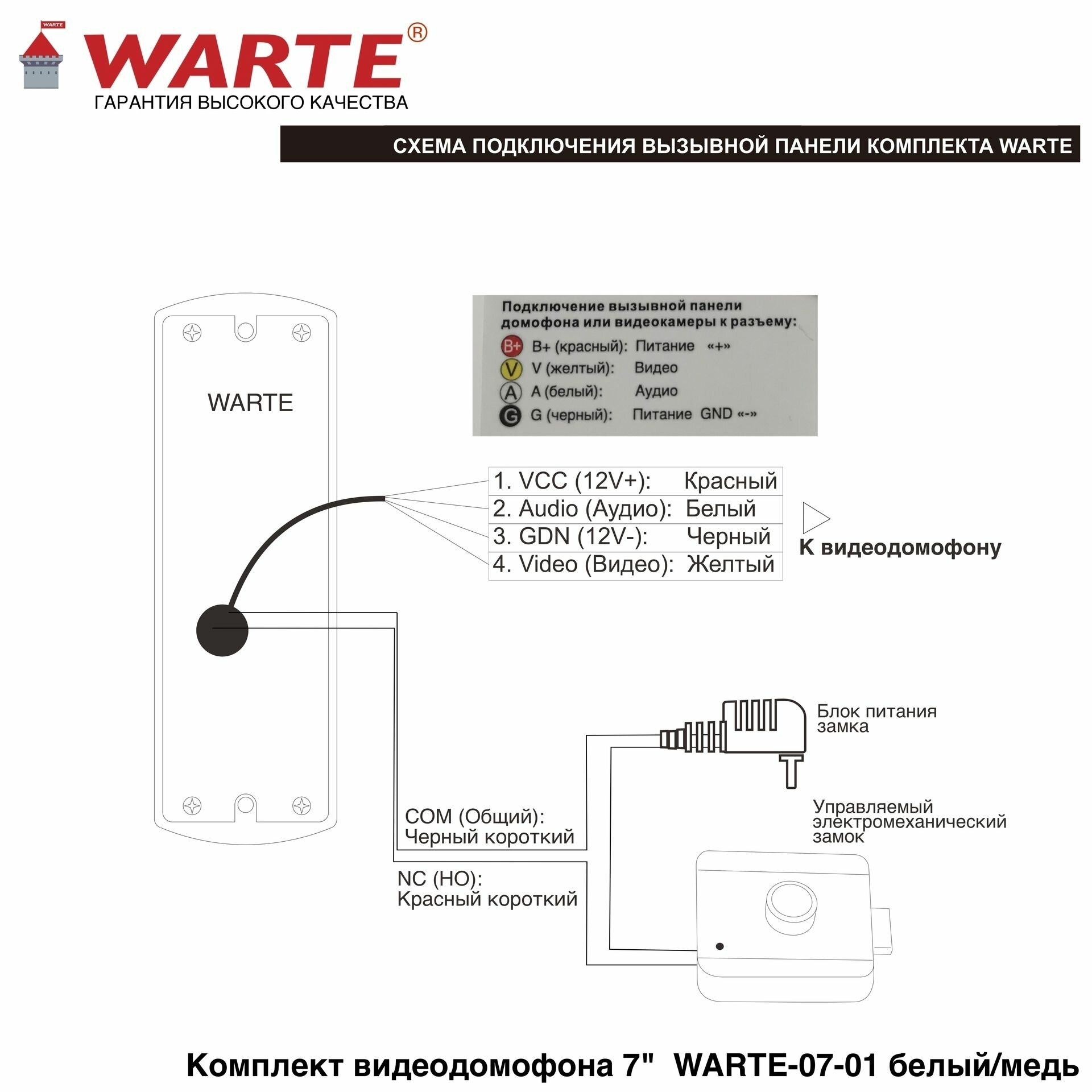 WARTE-07-01 (белый/медь) - комплект видеодомофона для квартиры, дома или офиса, монитор 7" + вызывная панель интересное: